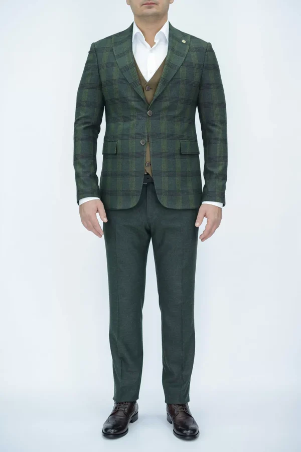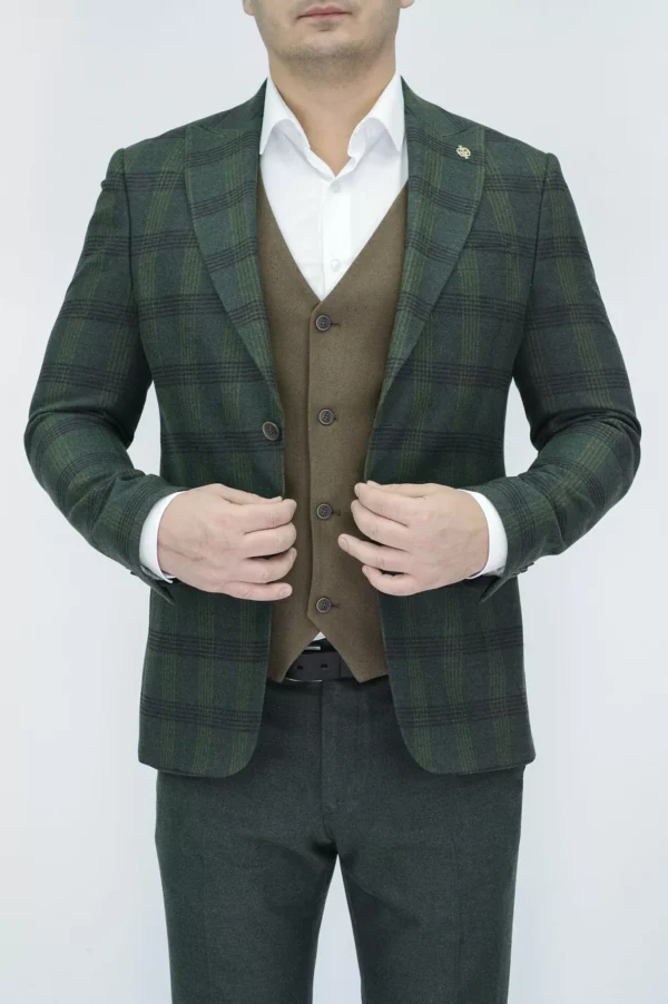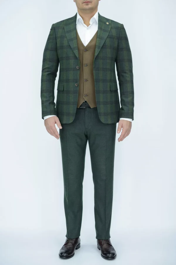 Костюм-тройка с клетчатым зеленым пиджаком