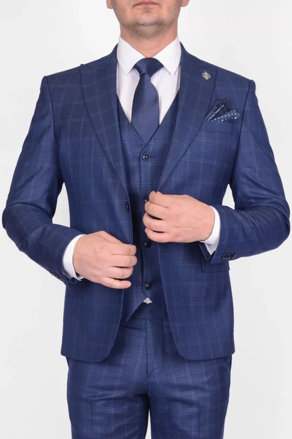 Перейти к товару Костюм-тройка синего цвета в тонкую клетку