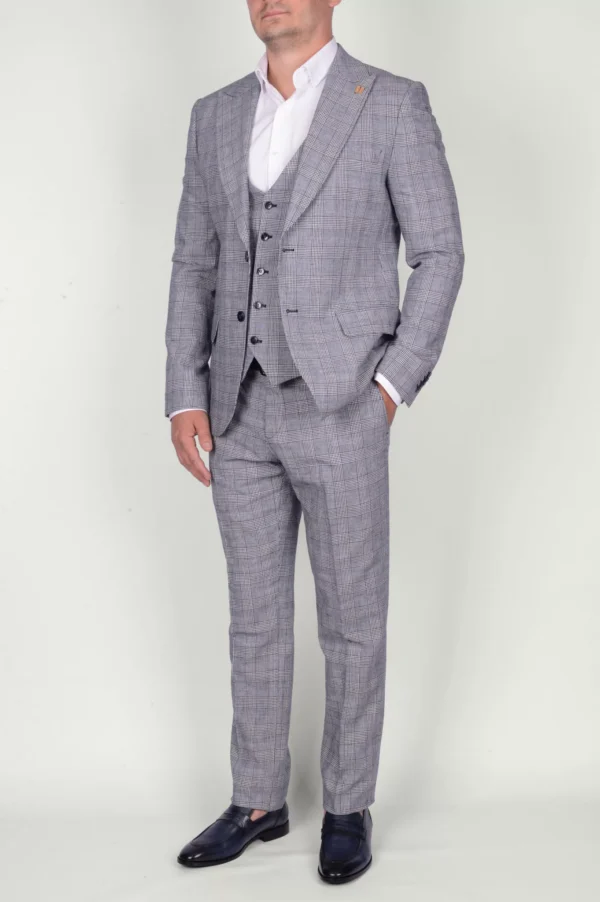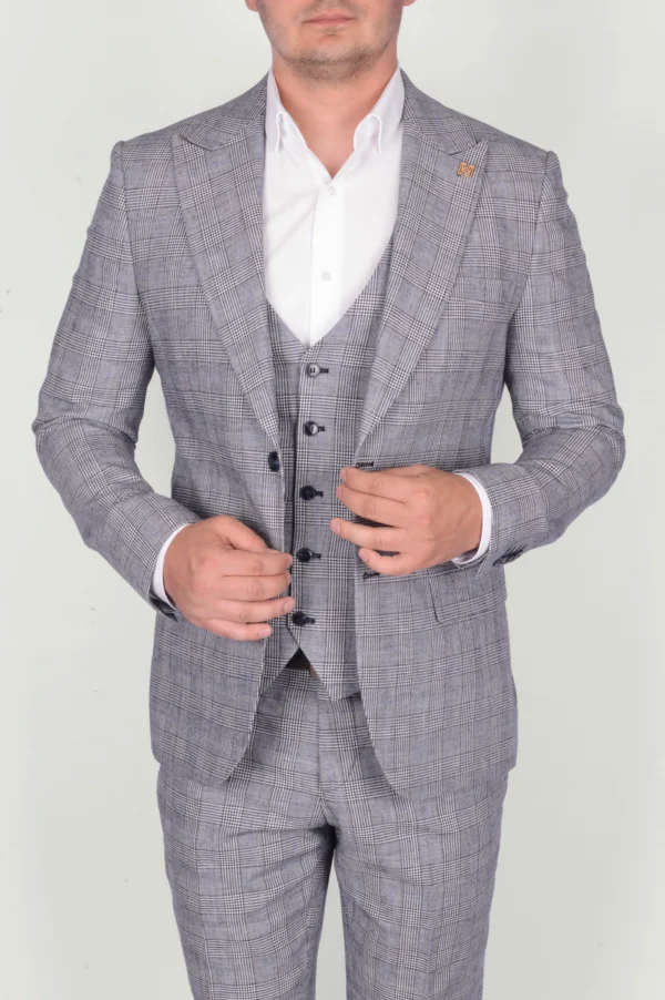 Перейти к товару Костюм-тройка серого цвета с клеточным пиджаком
