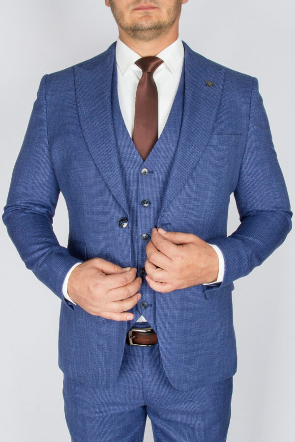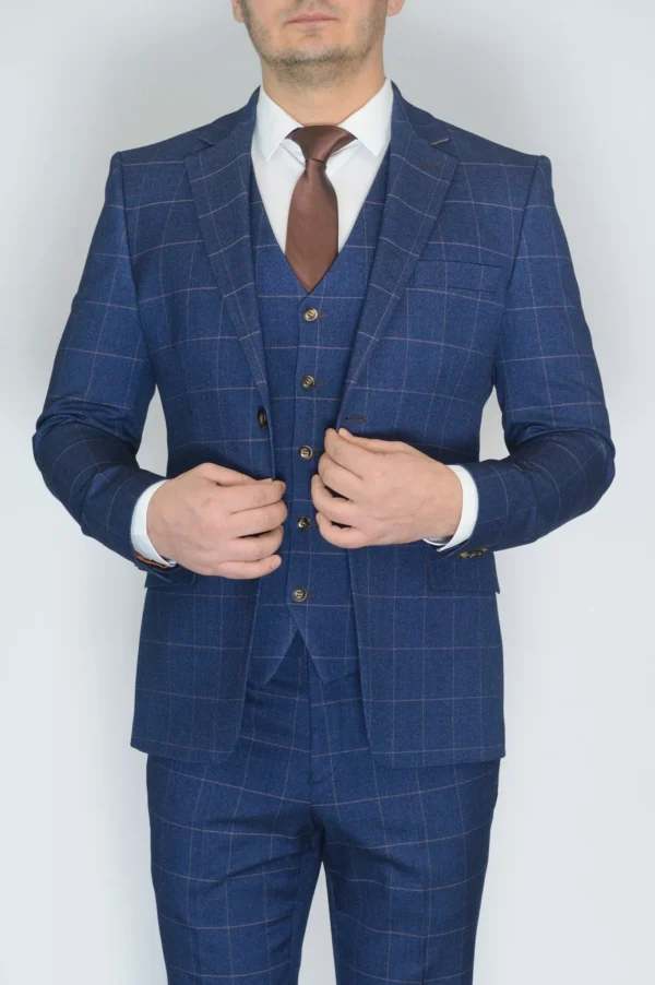 Перейти к товару Костюм-тройка синего цвета с клеточным пиджаком