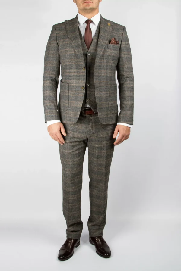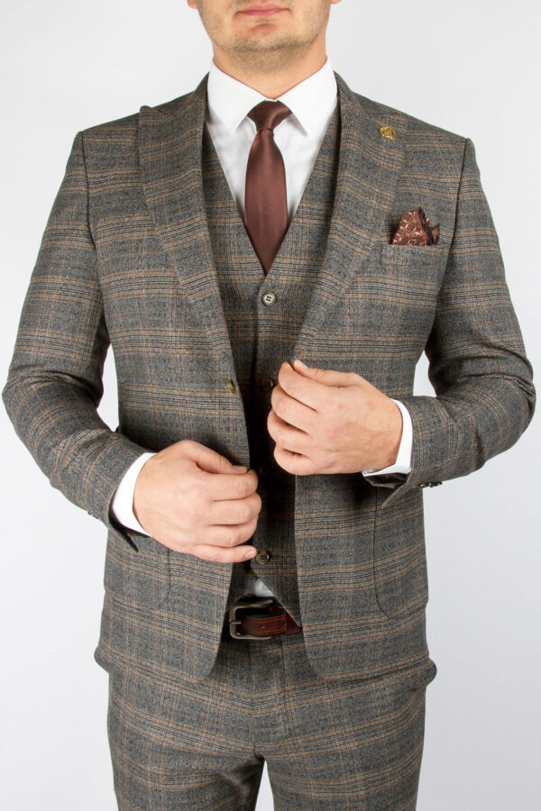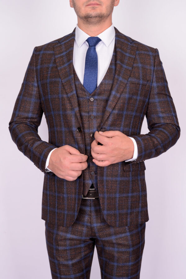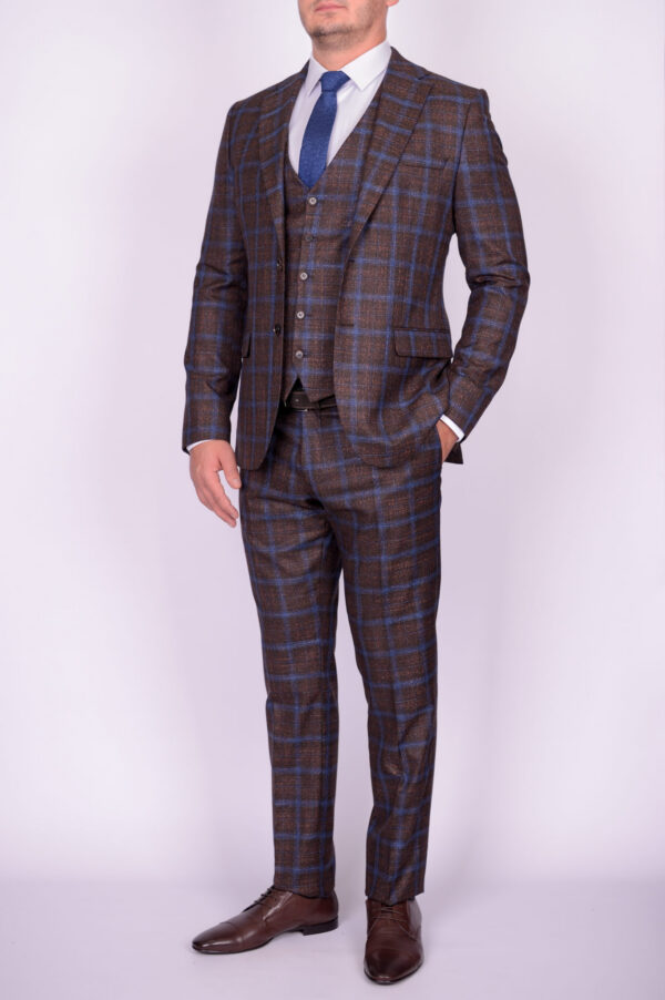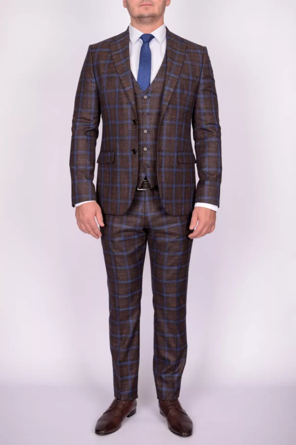 Костюм-тройка коричневого цвета в крупную клетку