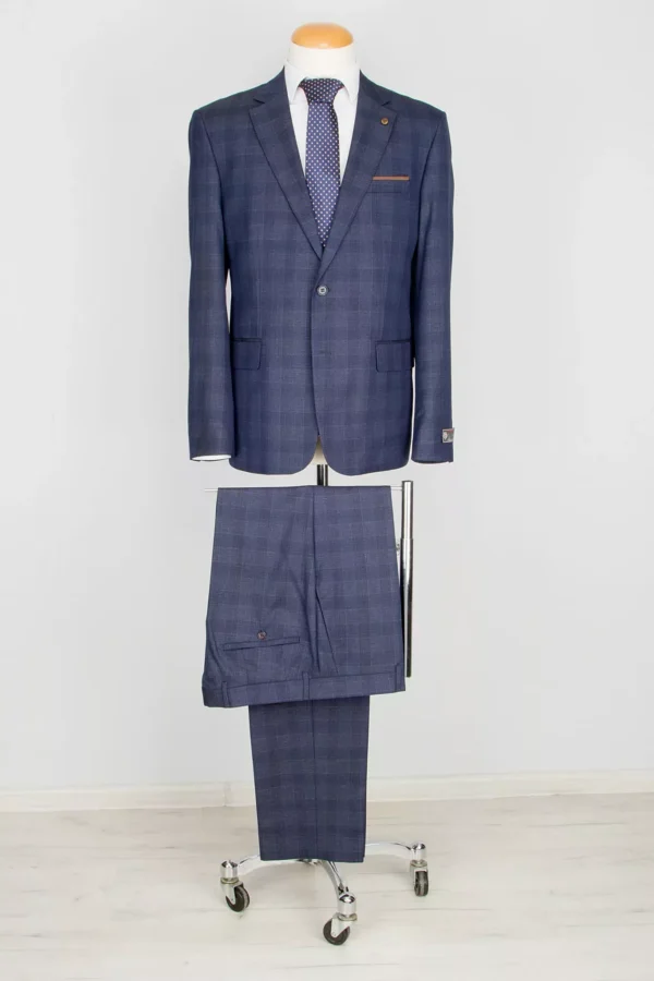 Костюм-тройка синего цвета с клеточным пиджаком