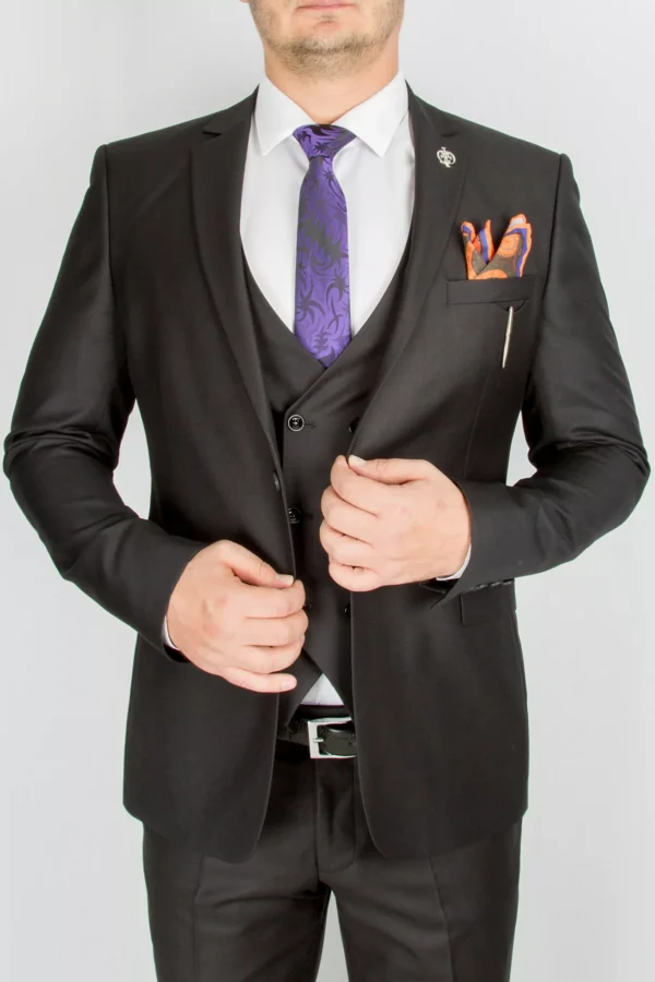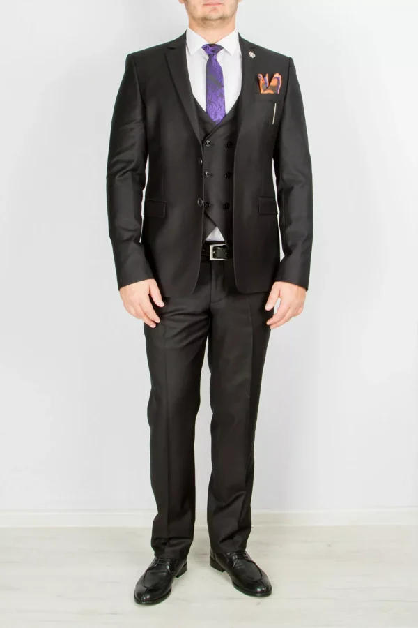 Костюм-тройка матово-черный