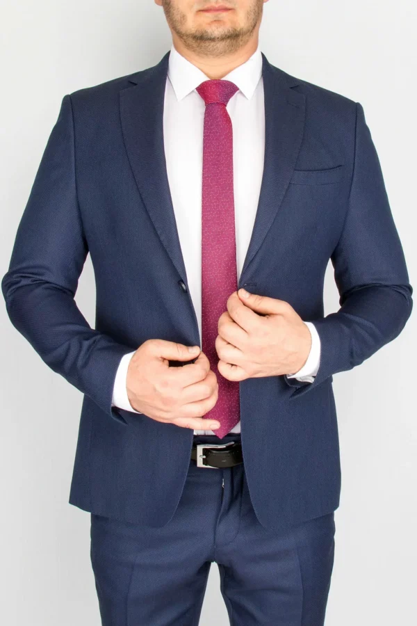 Перейти к товару Приталенный костюм-тройка темно-синего цвета
