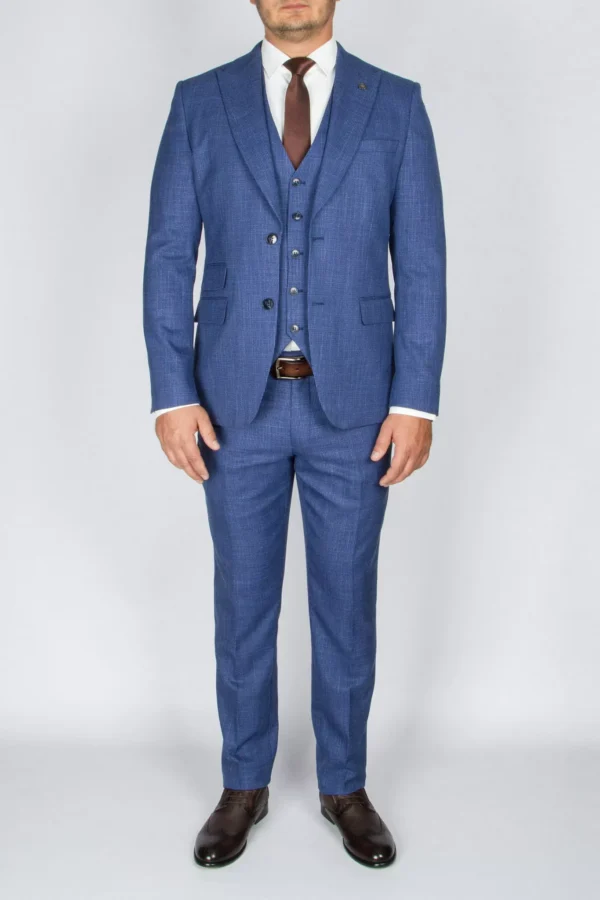 Перейти к товару Костюм-тройка синего цвета в тонкую клетку