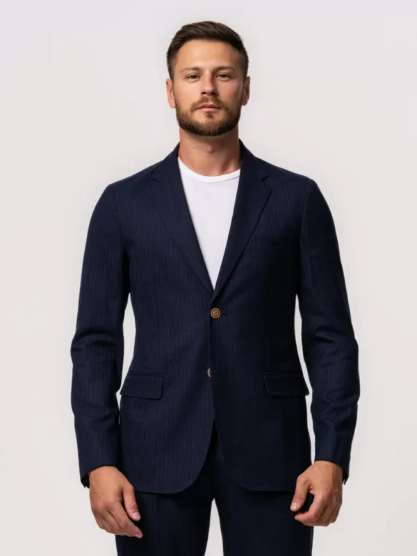 Костюм-двойка синего цвета в полоску