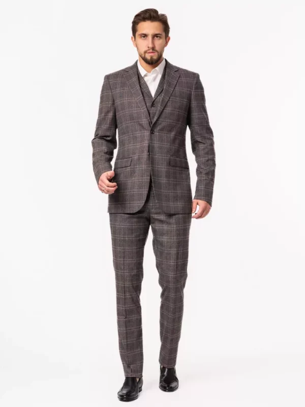 Костюм-тройка в клетку на высокий рост