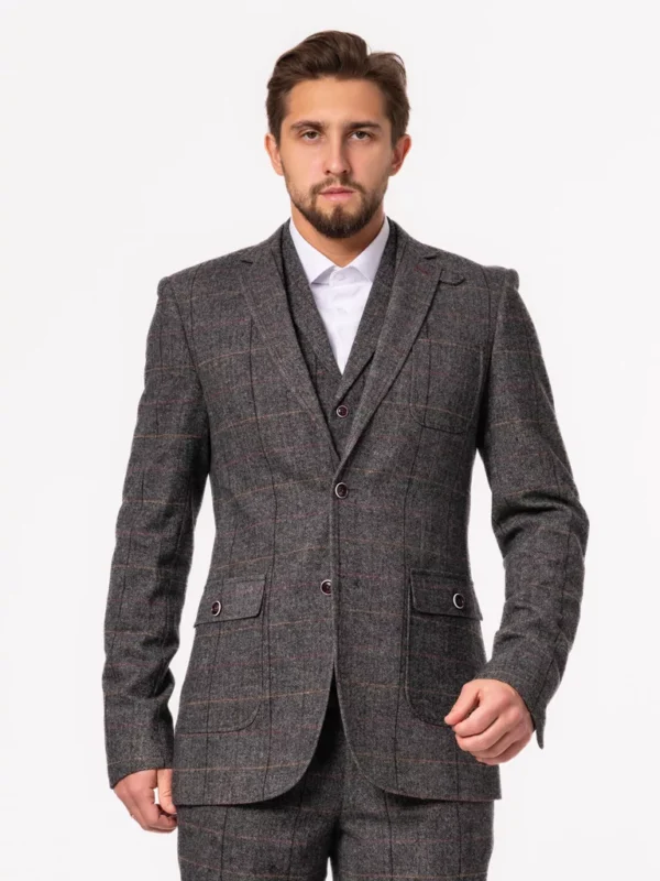 Костюм-тройка серого цвета в клетку на высокий рост