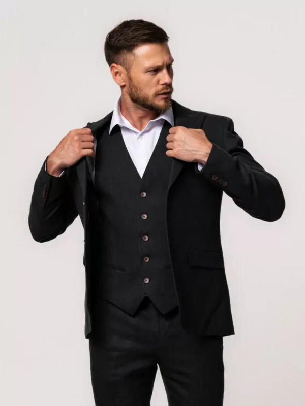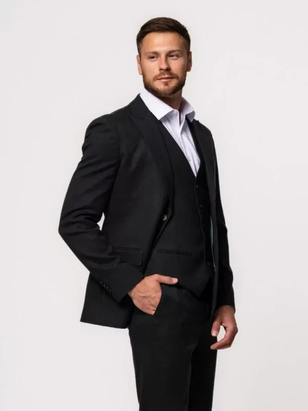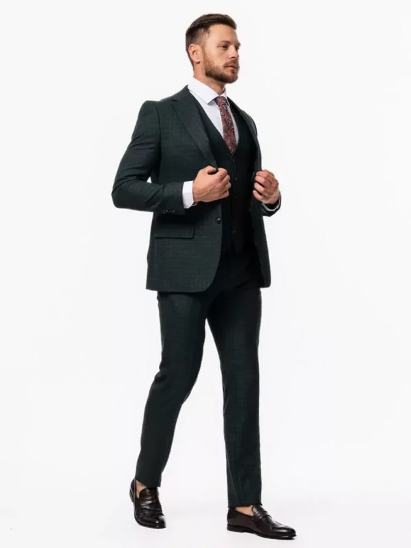 Костюм-тройка темно-зеленого цвета в мелкую клетку