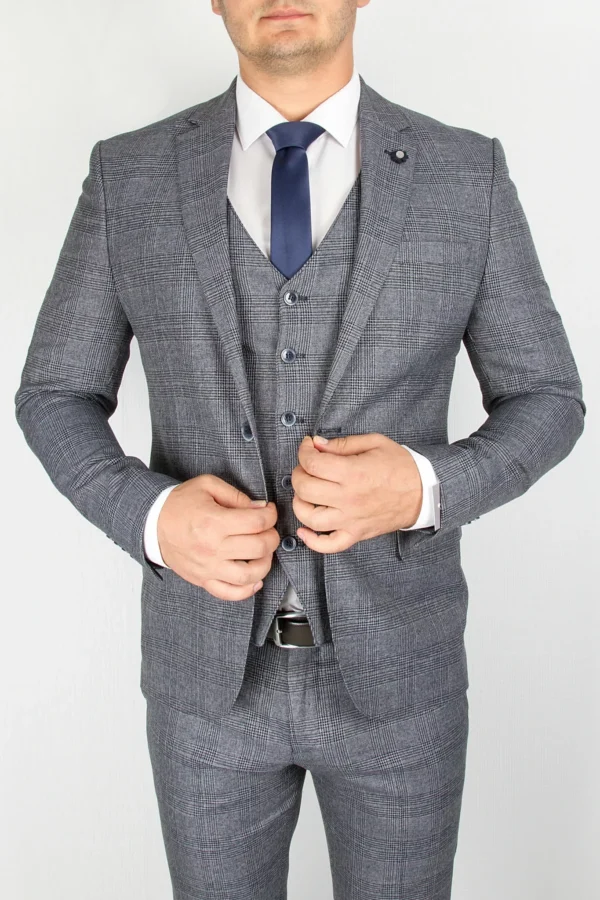 Костюм синего цвета в неяркую изумрудную клетку