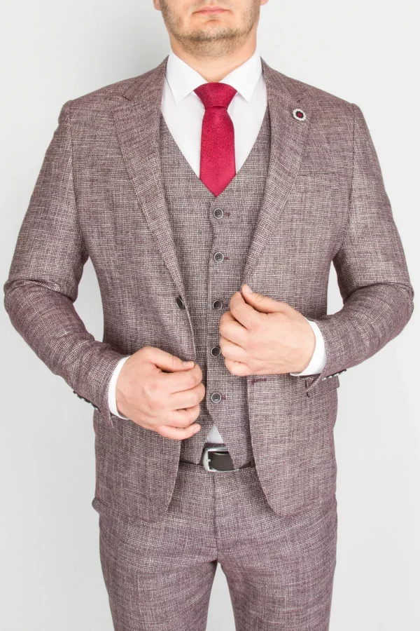 Клетчатый костюм-тройка песочного цвета