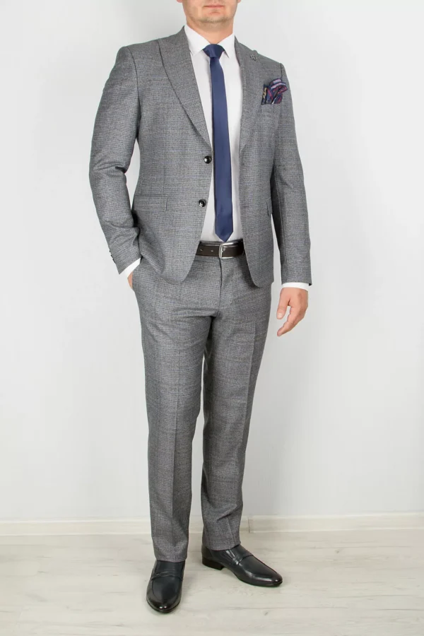 Костюм-тройка пепельно-серого цвета в неброскую клетку
