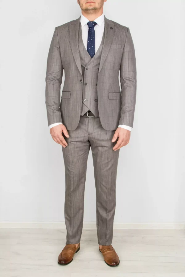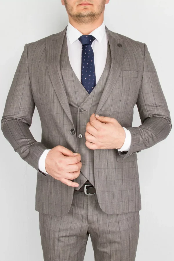 Перейти к товару Костюм-тройка песочного цвета в тонкую клетку
