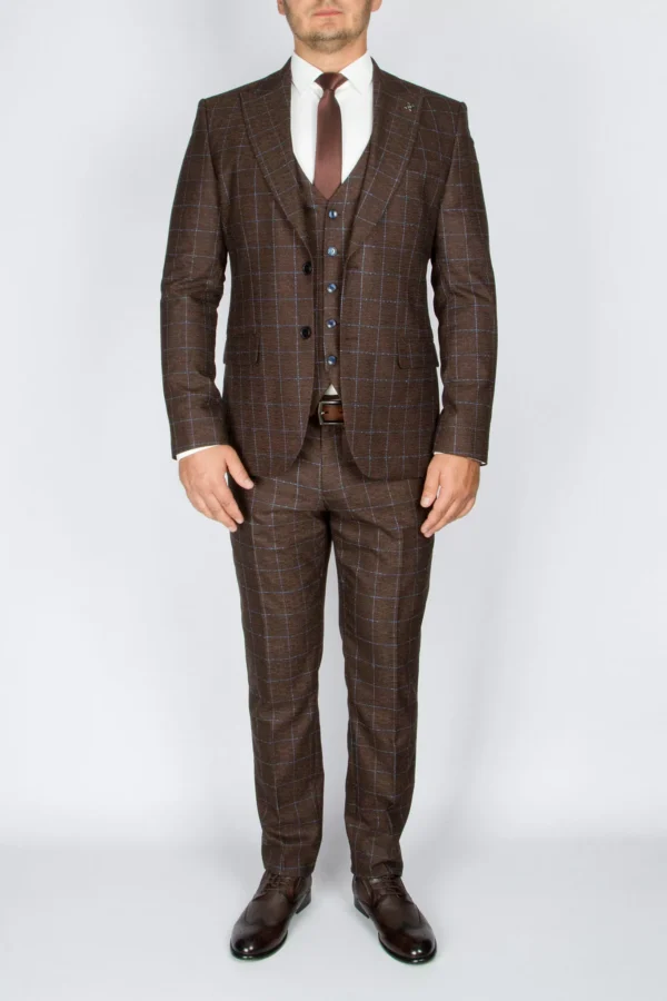 Перейти к товару Костюм-тройка шоколадного цвета в голубую клетку