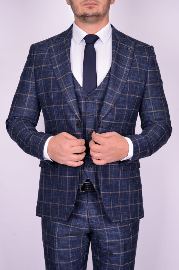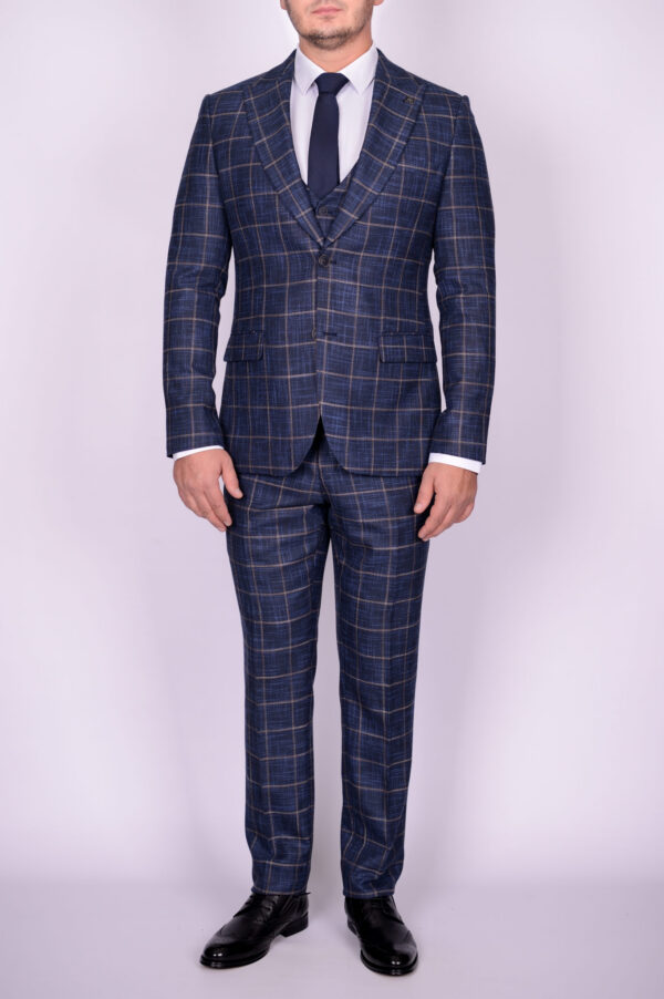 Перейти к товару Костюм-тройка синего цвета в крупную клетку