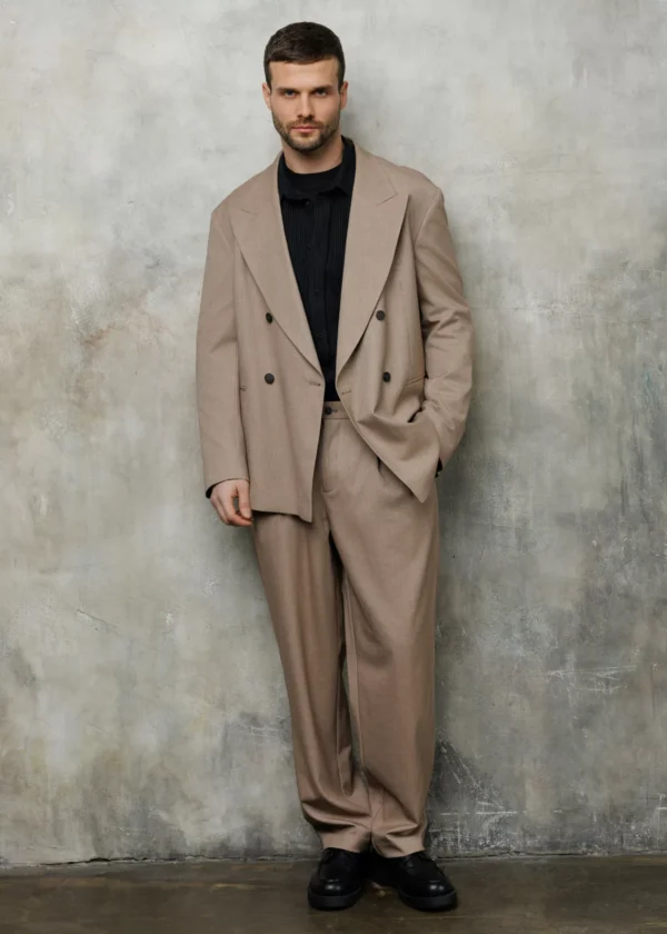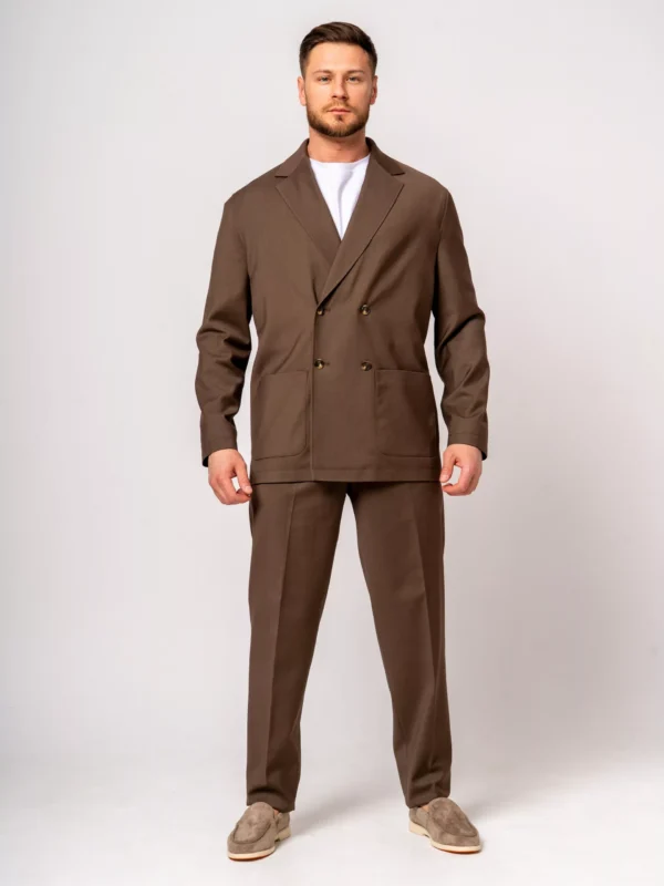 Костюм отшит в современной Casual модели свободного кроя. Пиджак облегченный с накладными карманами, возможно одевать с другими вещами. Брюки свободные с манжетом, резинка по поясу . Костюм отшит из смесовой ткани высокого качества в составе которой эластан , что позволяет долго сохранять презентабельный внешний вид и форму, ткань устойчива к заминанию. Универсальная вещь по отношению к обуви,…подойдет любая.