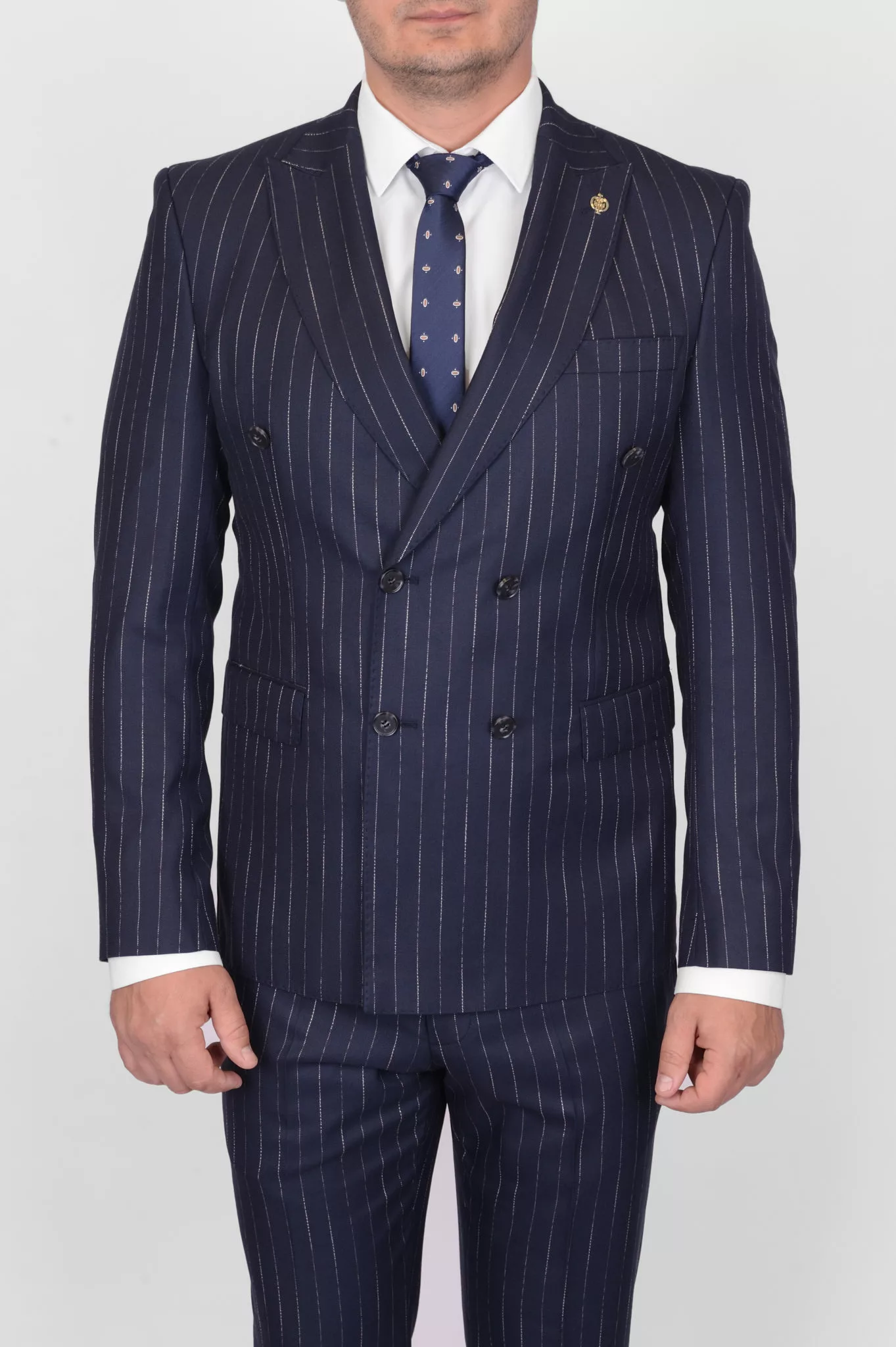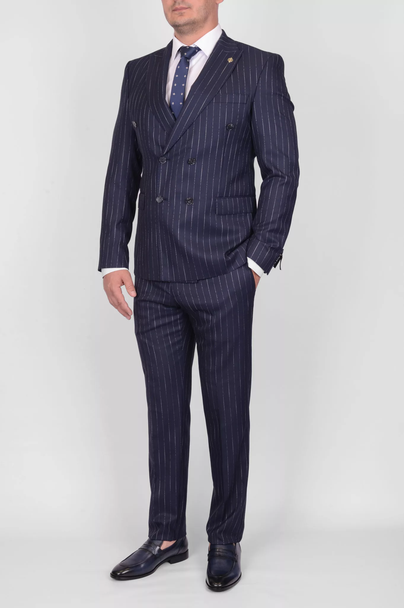 Двубортный костюм в тонкую полосу