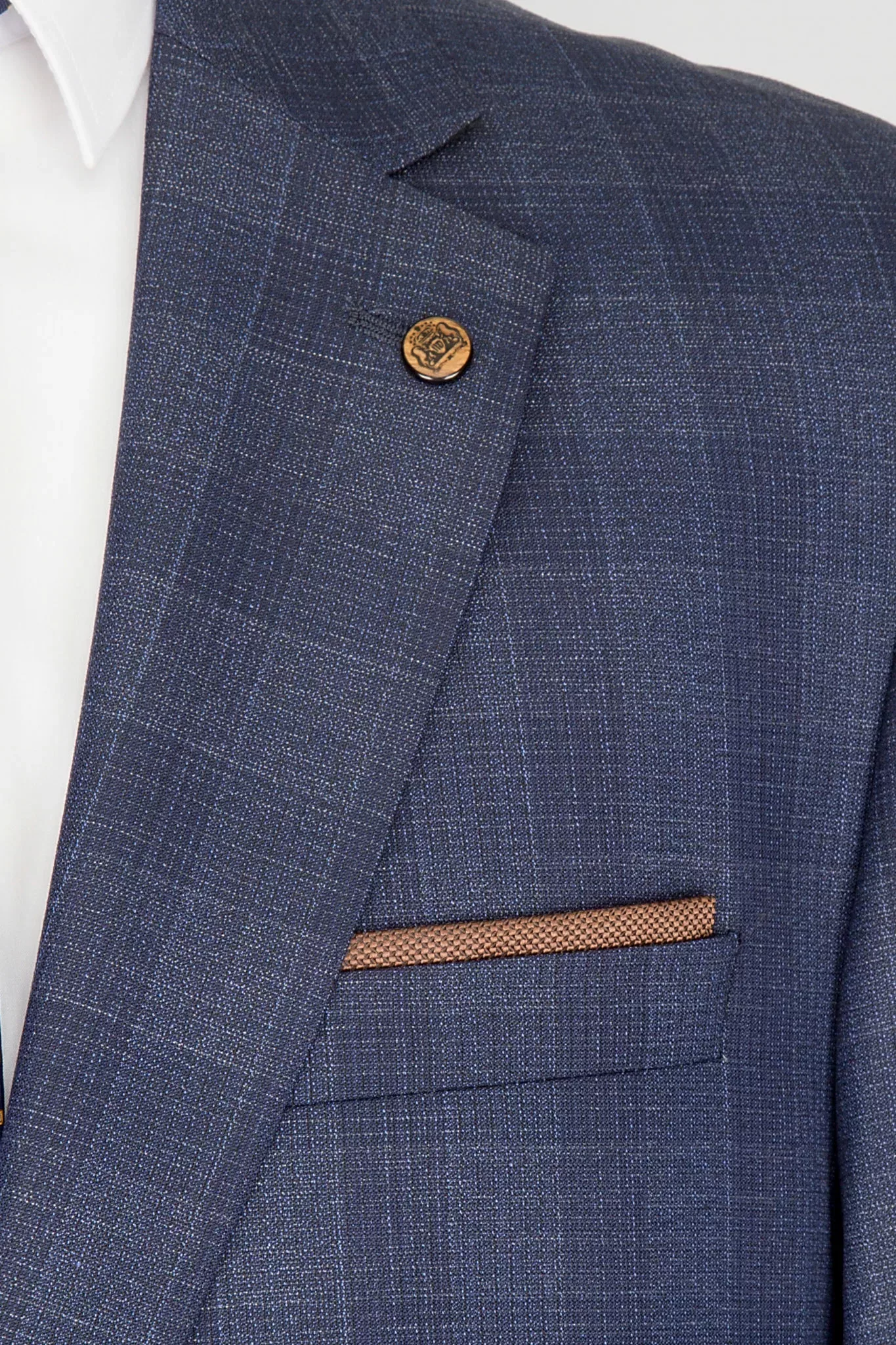 Костюм отшит в классической, свободной модели. Пиджак прямого кроя, имеет застежку на две пуговицы, сзади две шлицы. Нагрудный карман укомплектован платком. Брюки прямого кроя, ширина низа 20 см. Отлично подойдет для мужчин со строгим офисным дресс-кодом.
