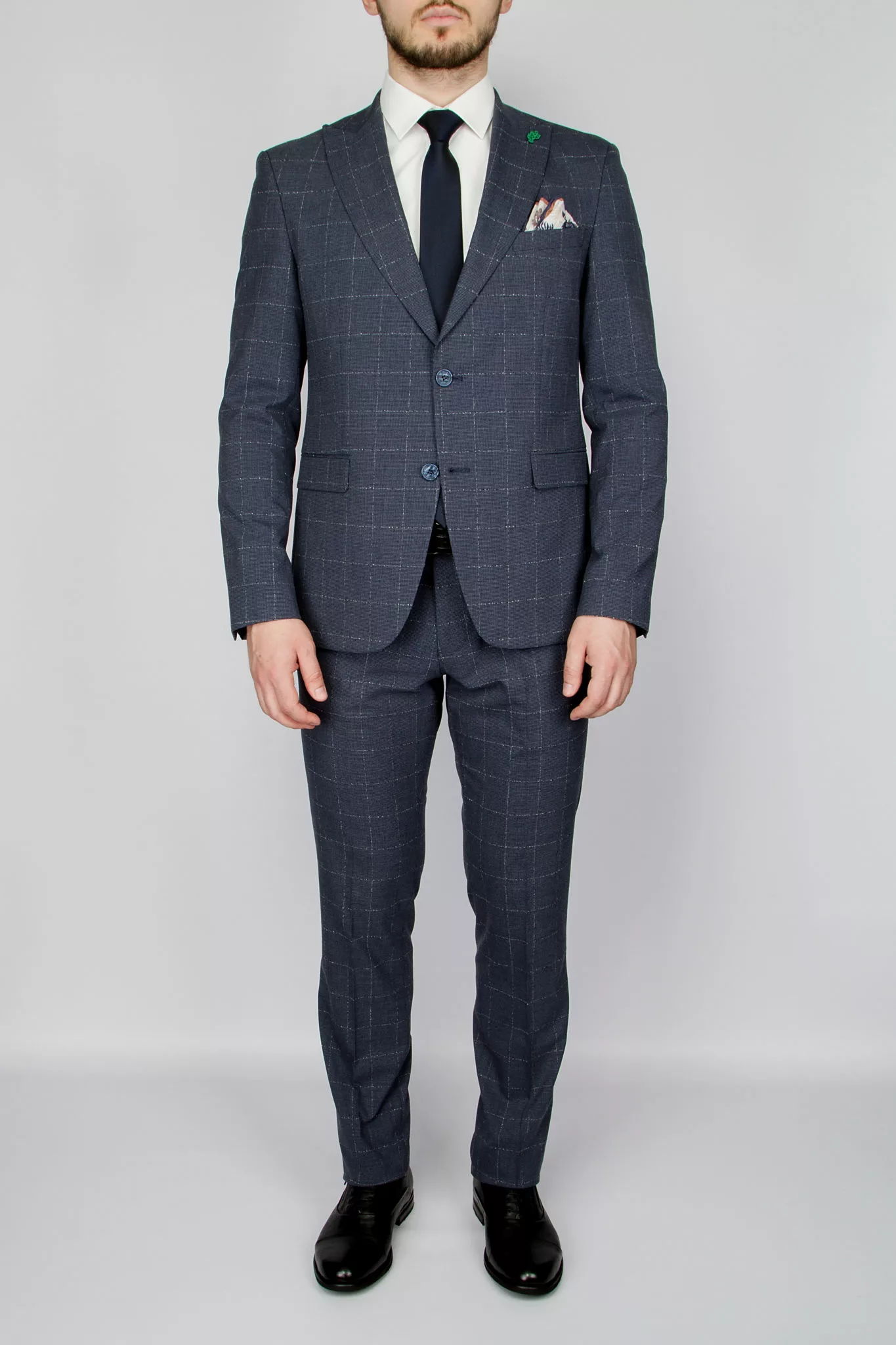 Костюм отшит в полуприталенной модели regular fit. Пиджак имеет застежку на две пуговицы, заостренный лацкан воротника (ласточка), значек в петлице. Брюки современного, слегка приуженного кроя, имеют свободную длину. По вашей просьбе мы бесплатно подгоним длину брюк под вашу ростовку. Костюм произведен из смесовой ткани высокого качества в составе 80% шерсти и 15% вискозы и 5% эластан, что позволяет долго сохранять презентабельный внешний вид и форму, ткань устойчива к заминанию. Костюм светло- серого цвета в классическую клетку, подойдет для носки в офисе и деловых встреч.