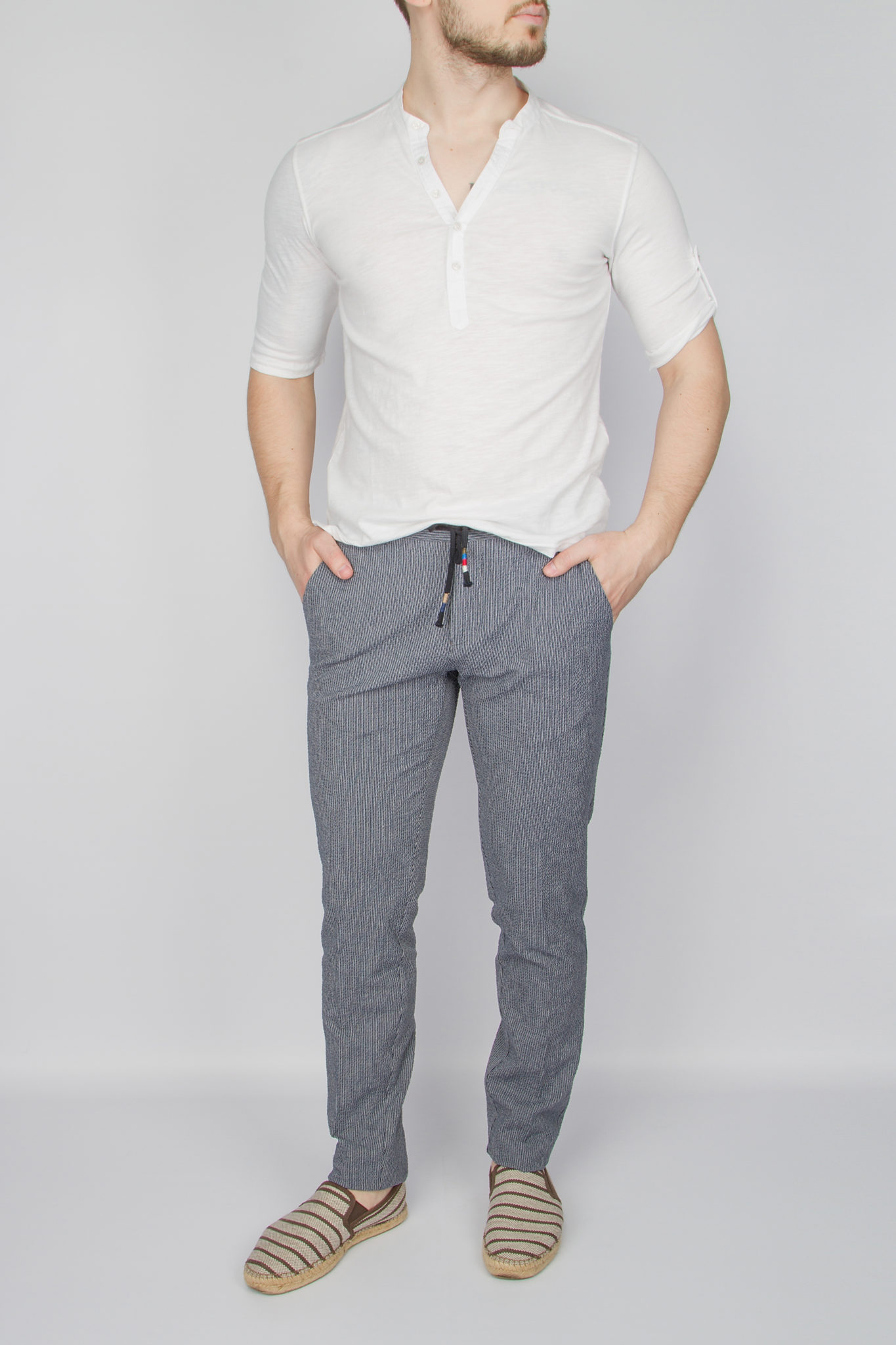 При покупке в шоуруме вы также можете воспользоваться примеркой и бесплатной подгонкой брюк.