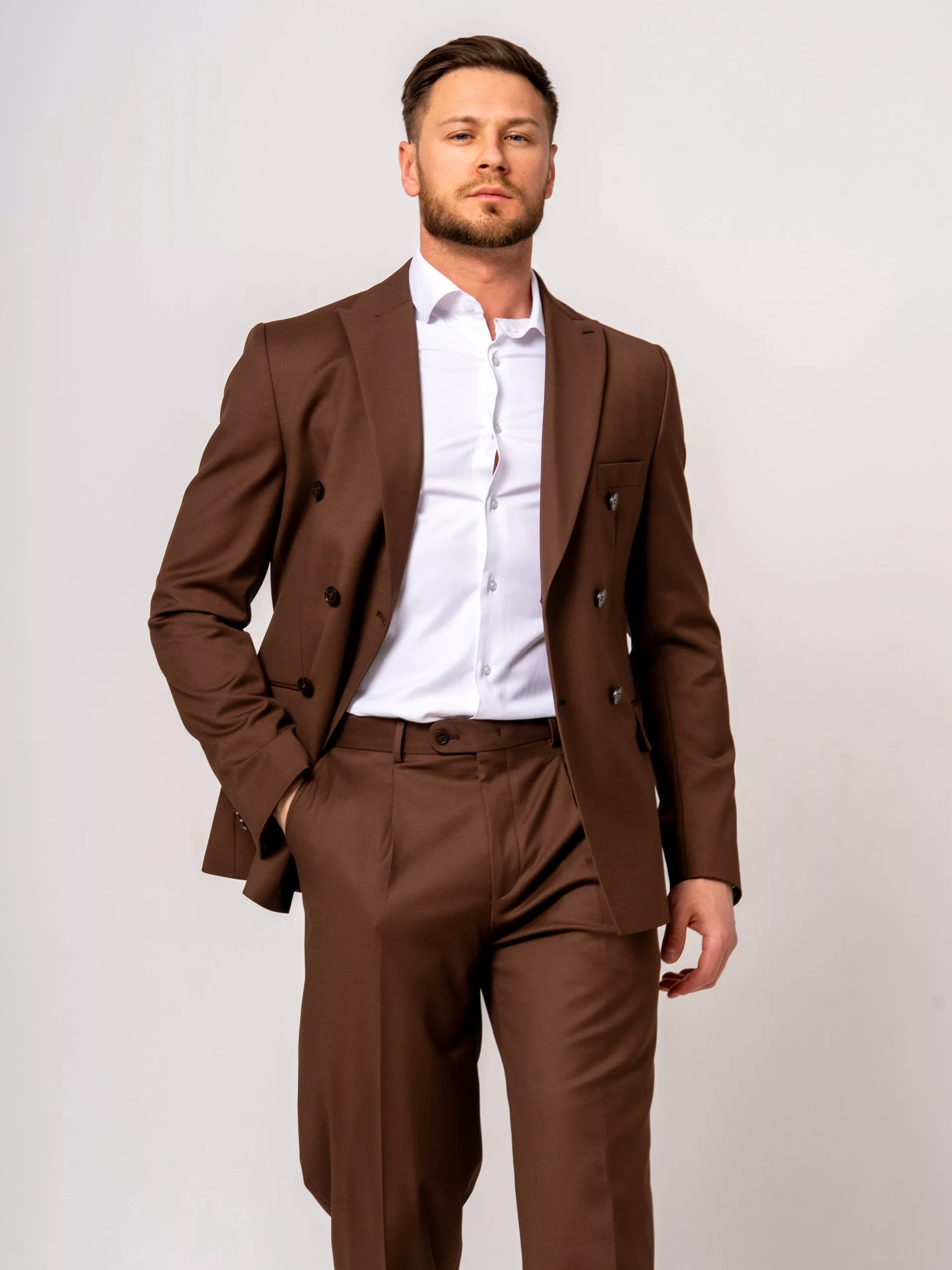 Костюм-двубортный цвет молочный шоколад