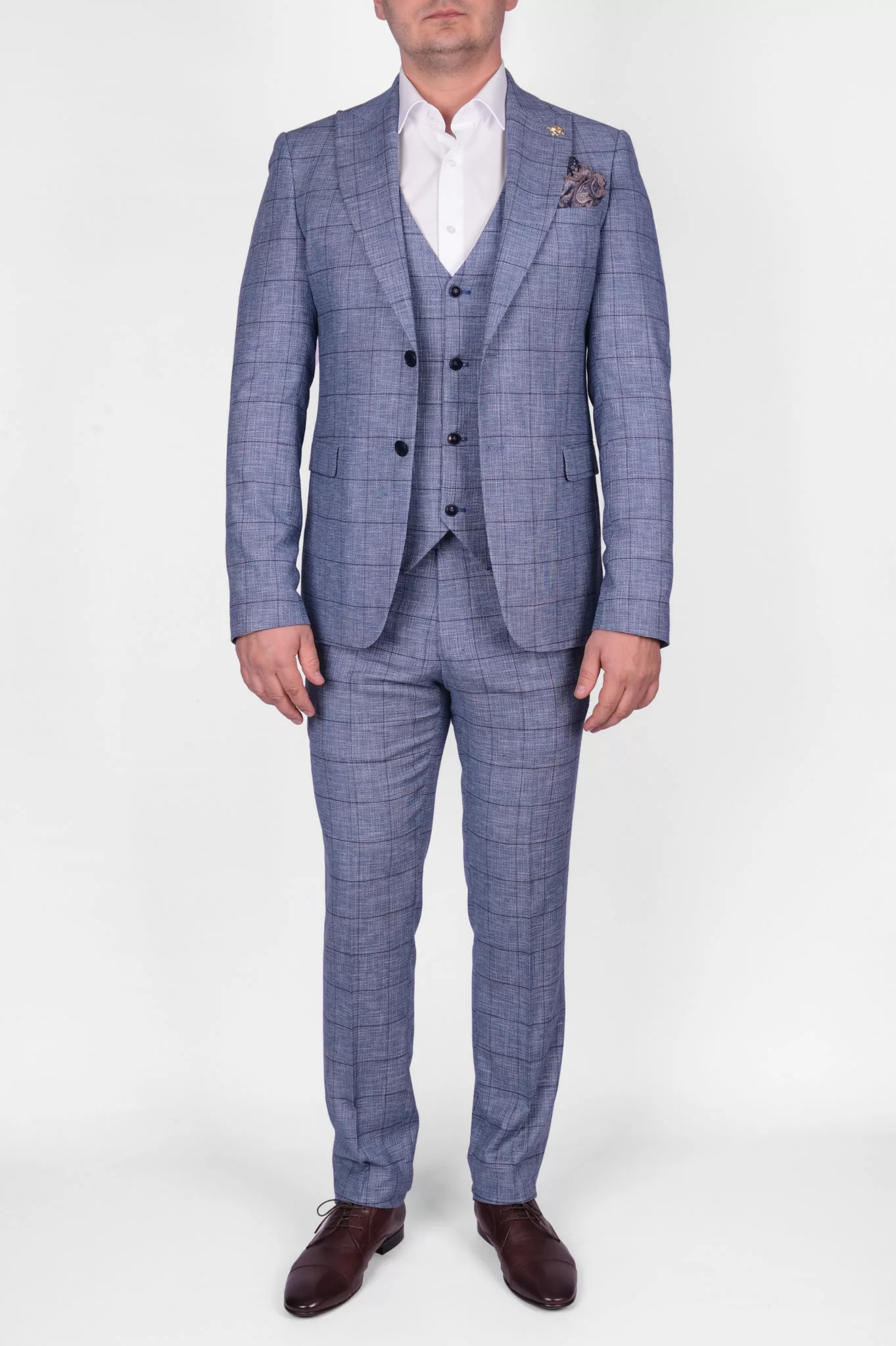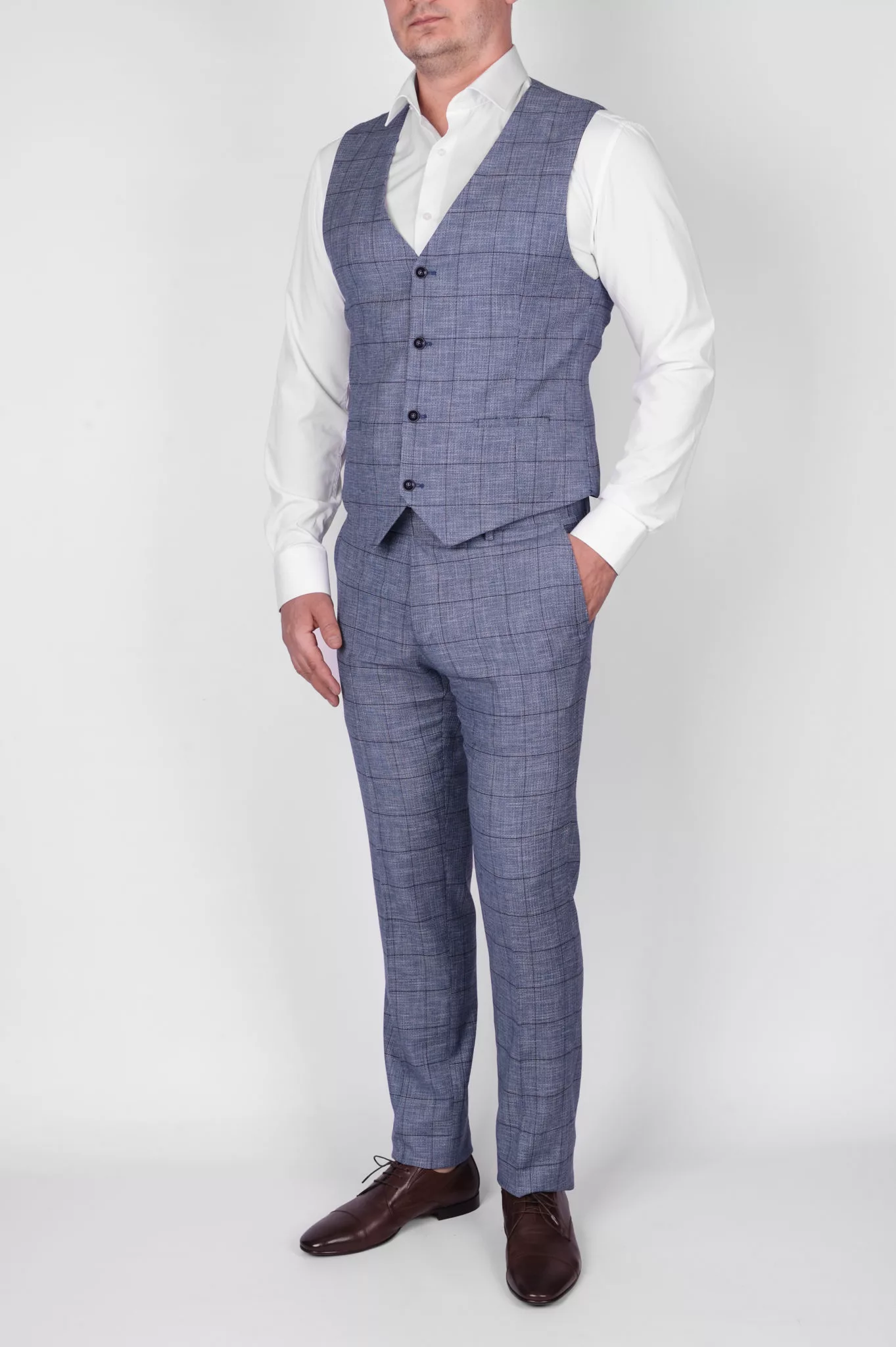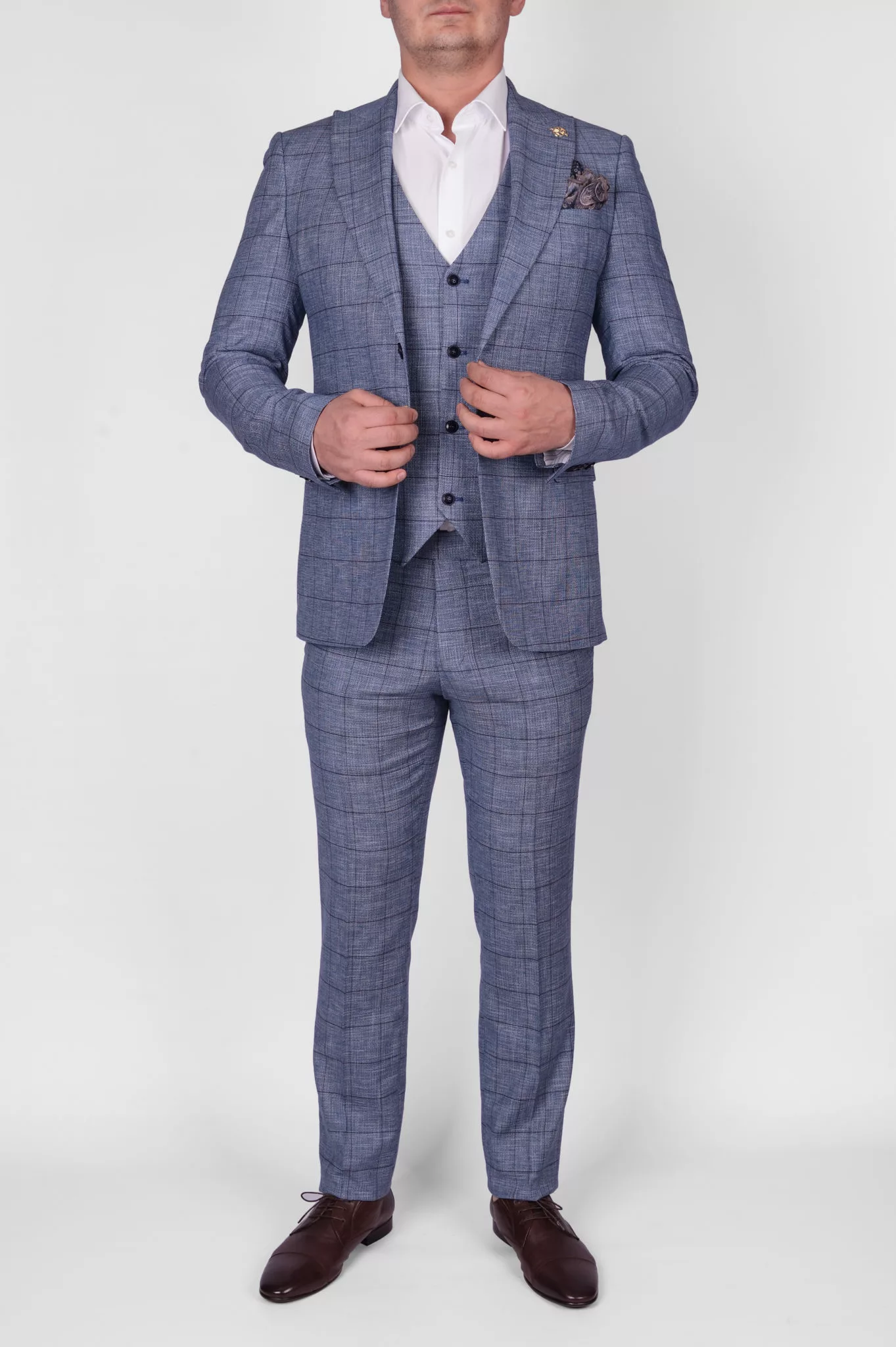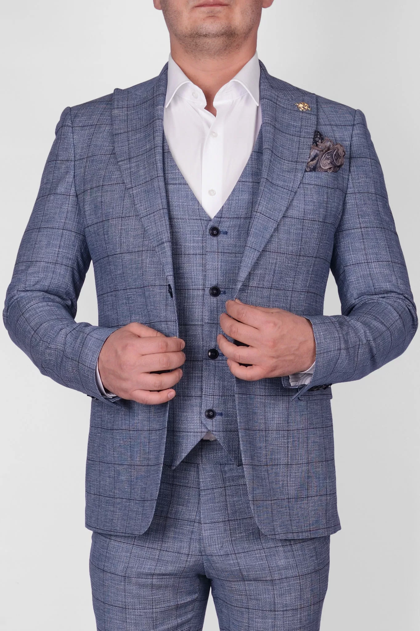 Костюм-тройка бирюзового цвета в клетку
