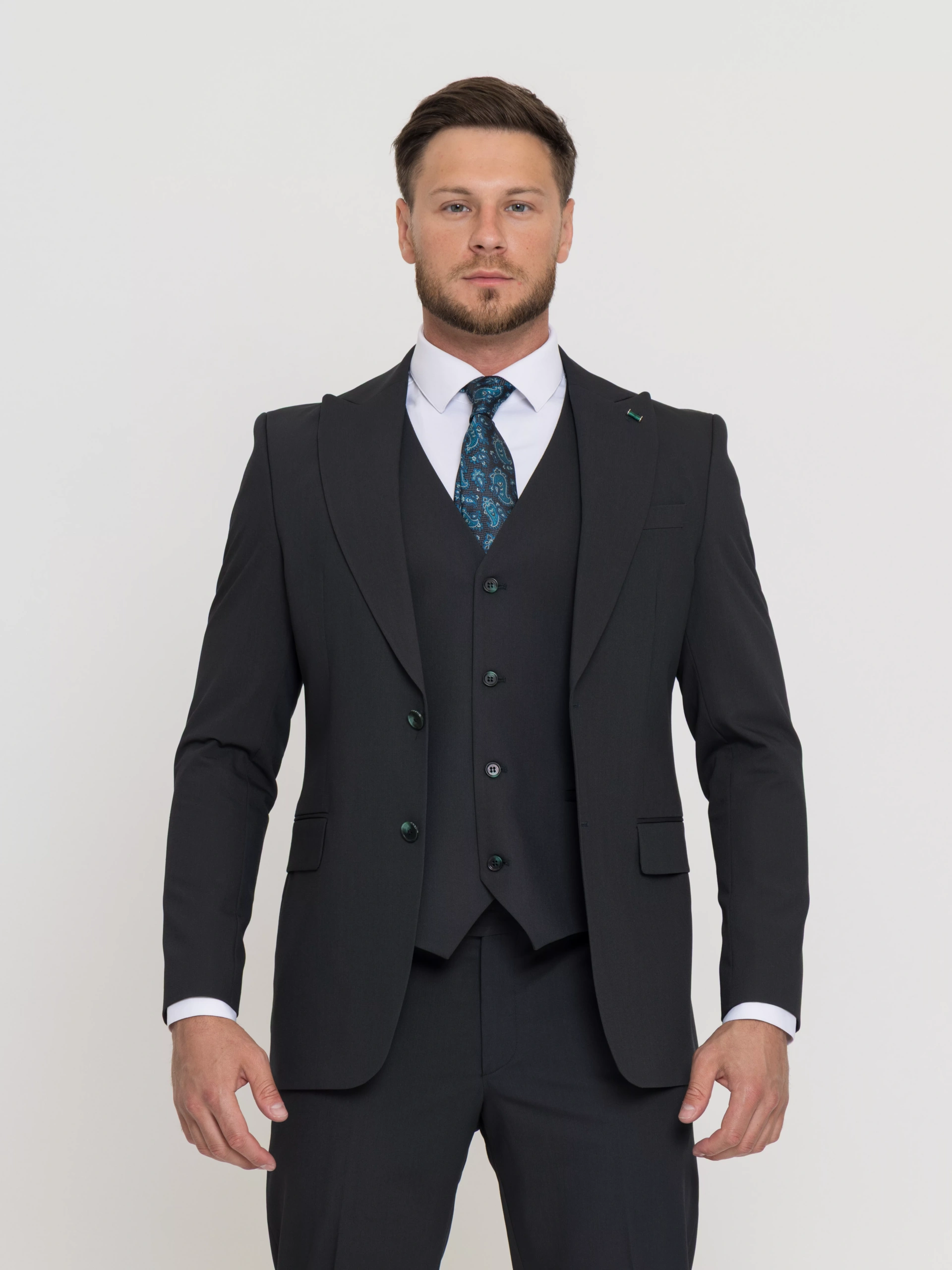 Костюм отшит в полуприталенной модели regular-fit. Пиджак имеет застежку на две пуговицы, классический лацкан воротника, нагрудный карман с листочкой, комплектуется платком, значок в петлице. Боковые карманы пиджака скошенные. Брюки, современного прямого кроя, имеют свободную длину. По вашей просьбе мы бесплатно подгоним длину брюк под вашу ростовку. Костюм отшит из смесовой ткани высокого качества в составе 65% шерсти и 33% вискозы и 2% эластан, что позволяет долго сохранять презентабельный внешний вид и форму, ткань устойчива к заминанию.