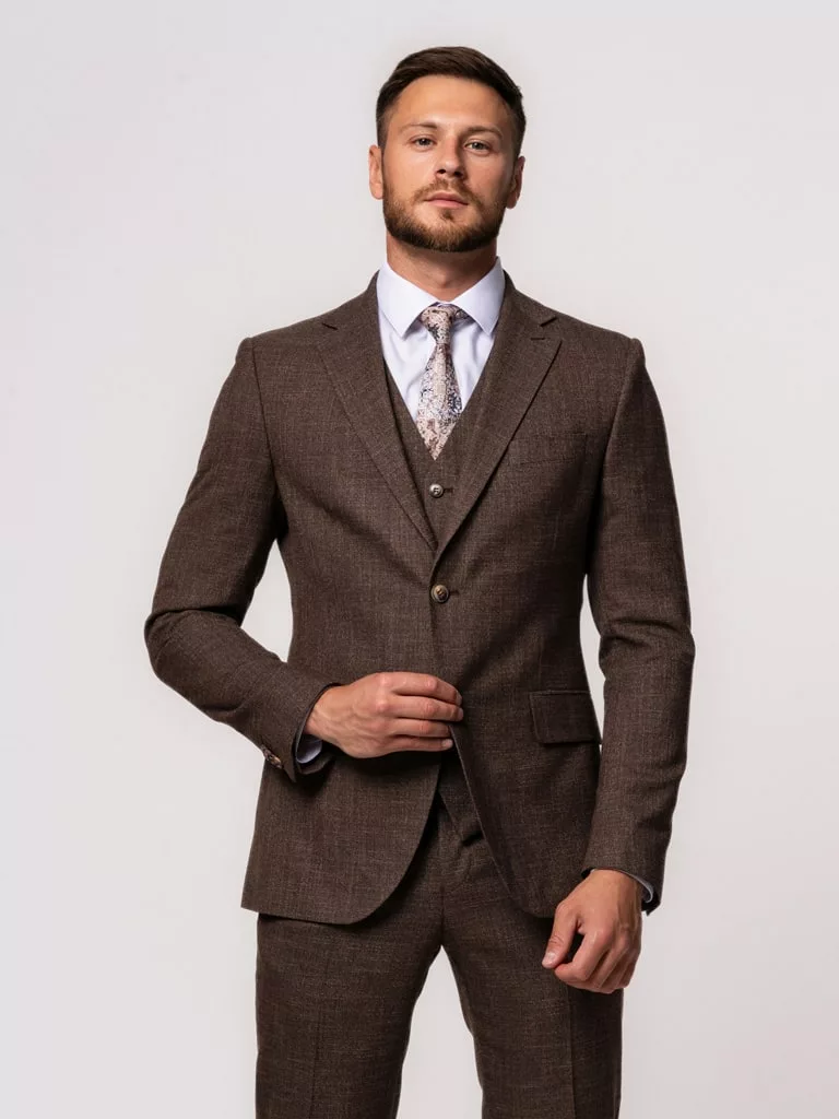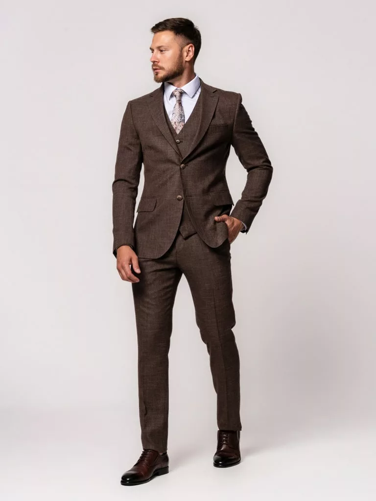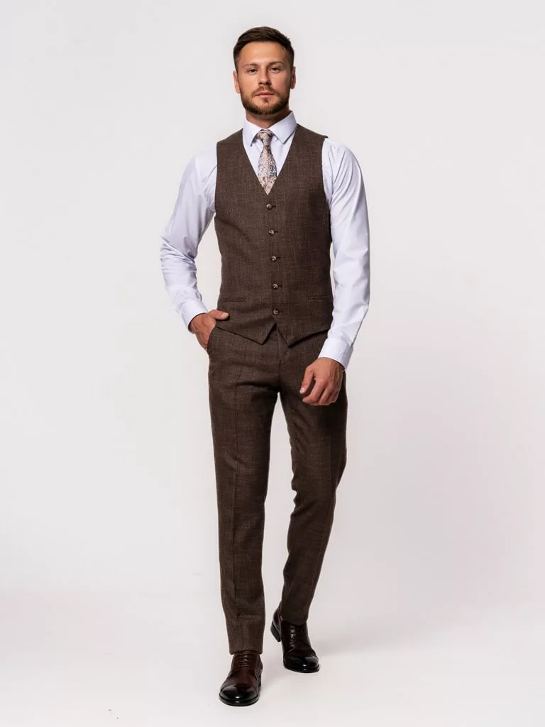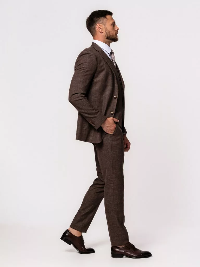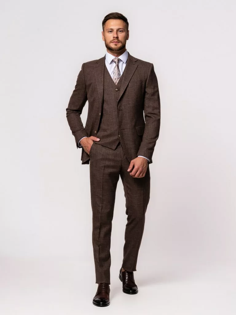 Костюм-тройка коричневого цвета в клетку