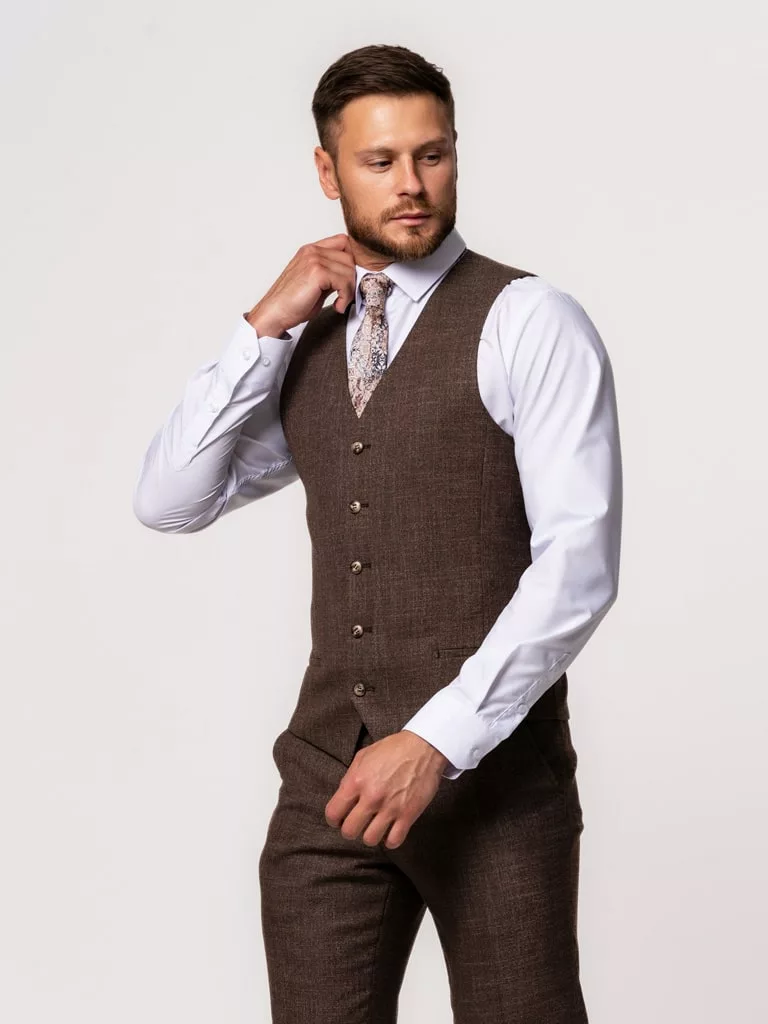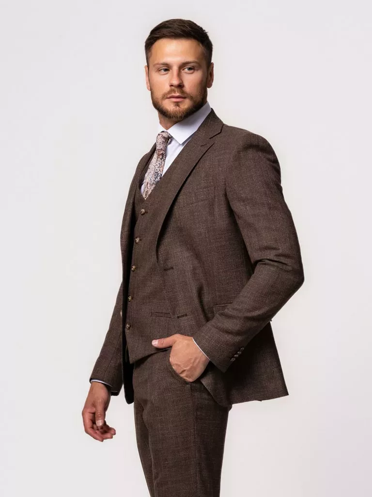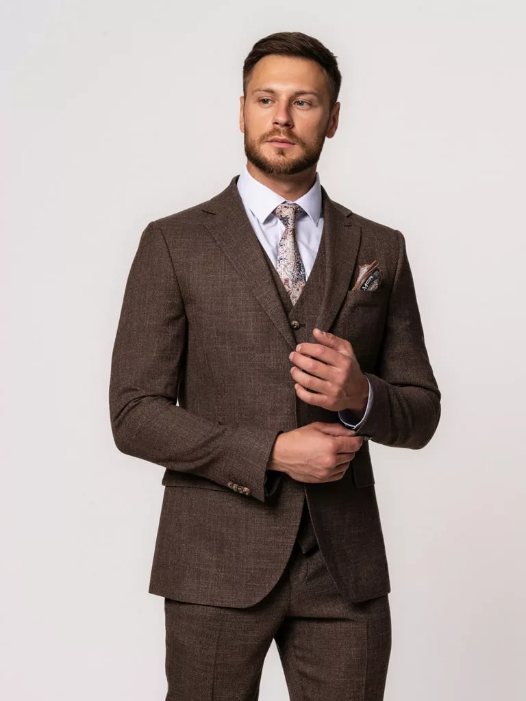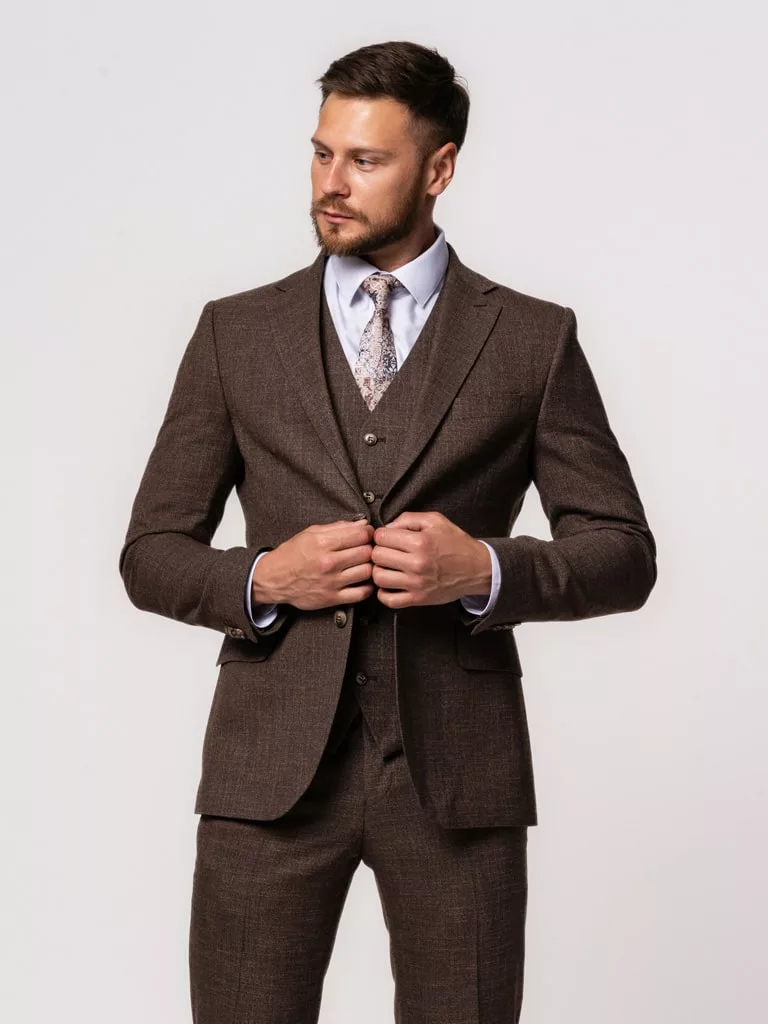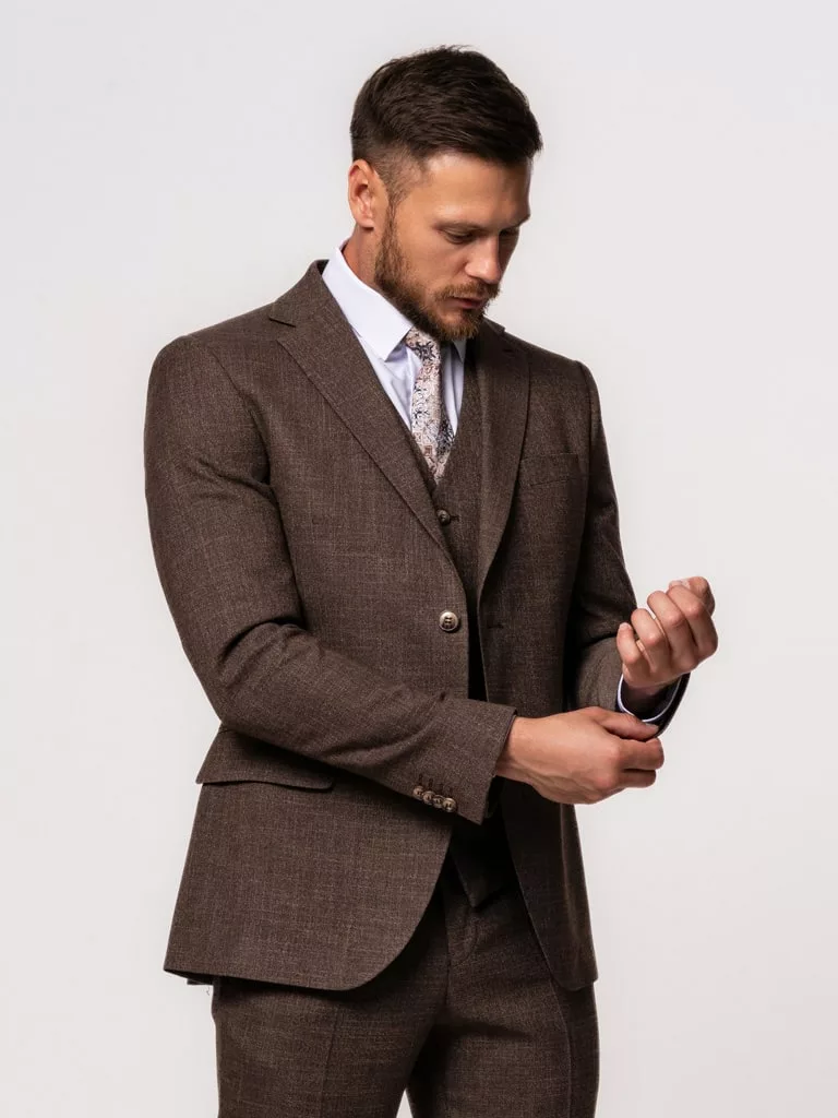 Костюм-тройка коричневого цвета в клетку