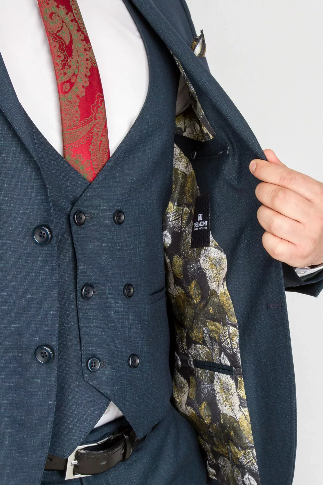 Костюм отшит в приталенной модели super-slim. Пиджак имеет застежку на две пуговицы, узкий лацкан воротника, нагрудный карман с листочкой комплектуемый платком, значек в петлице. Жилет двубортный с регулятором обьема.  Брюки заужены, имеют свободную длину. По вашей просьбе мы  подгоним длину брюк под вашу ростовку. Костюм отшит из смесовой ткани высокого качества в составе 70% шерсти и 30% вискозы, что позволяет долго сохранять презентабельный внешний вид и форму, ткань устойчива к заминанию. Данный костюм отлично подойдет для свадьбы, выпускного вечера и других торжественных случаев.