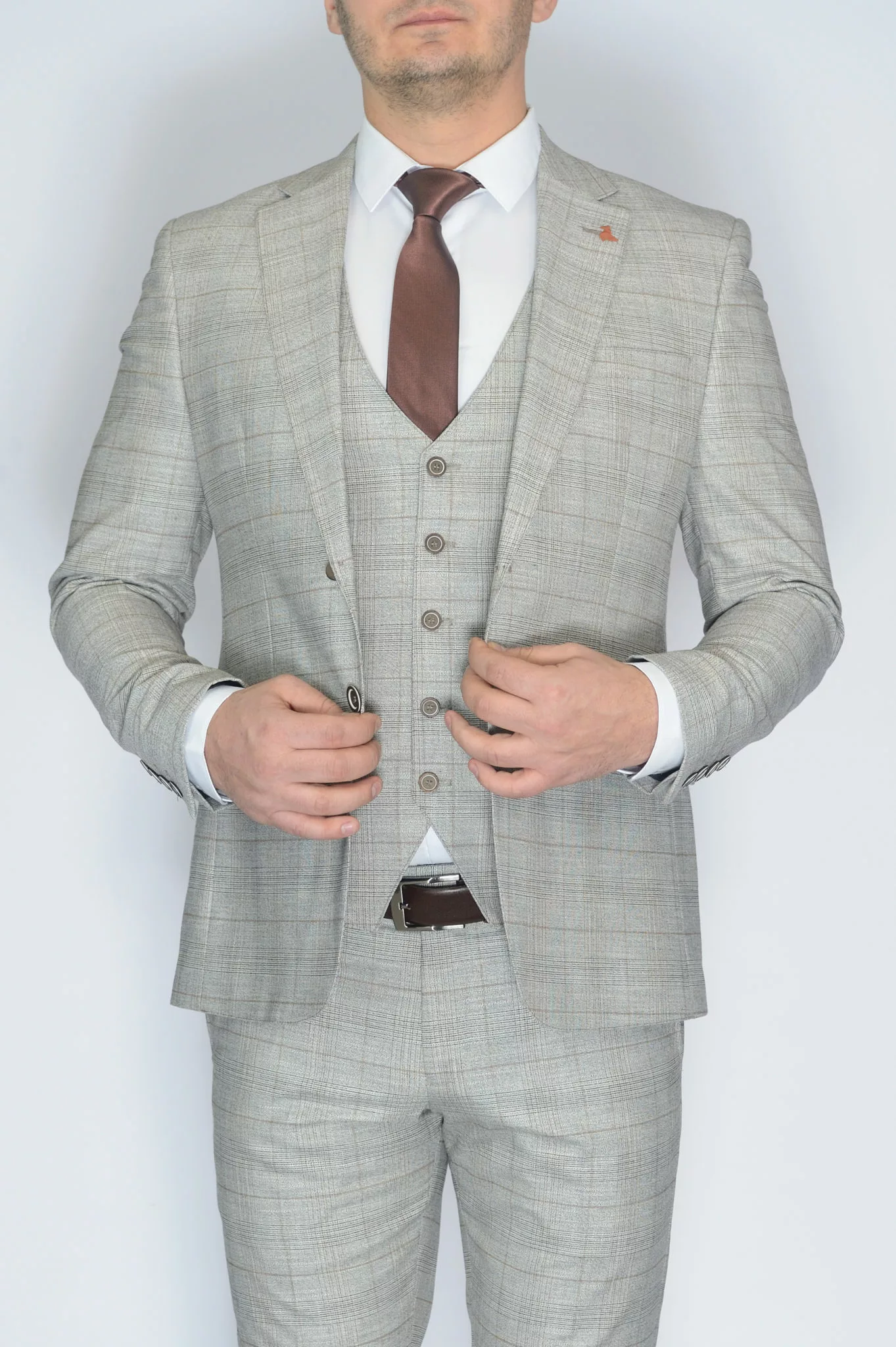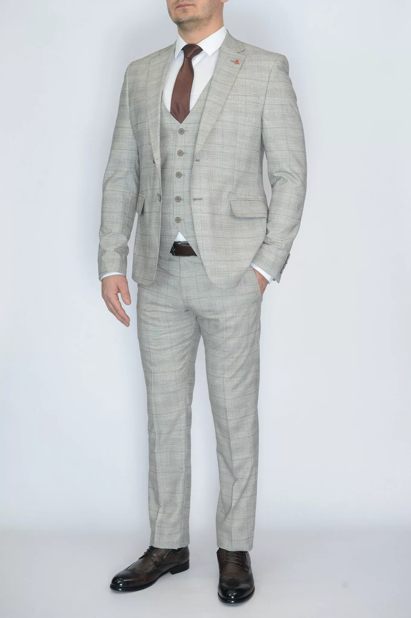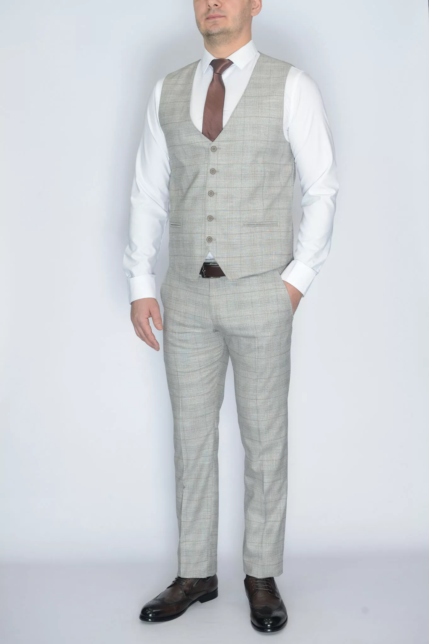 Костюм-тройка серый цвет в клетку