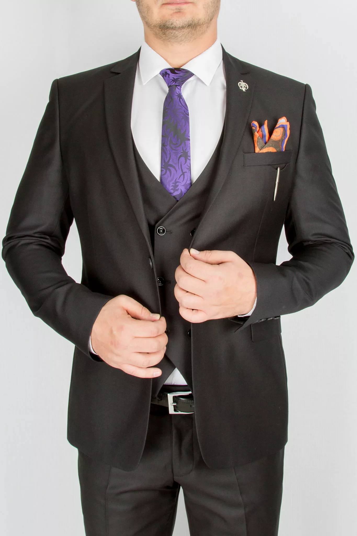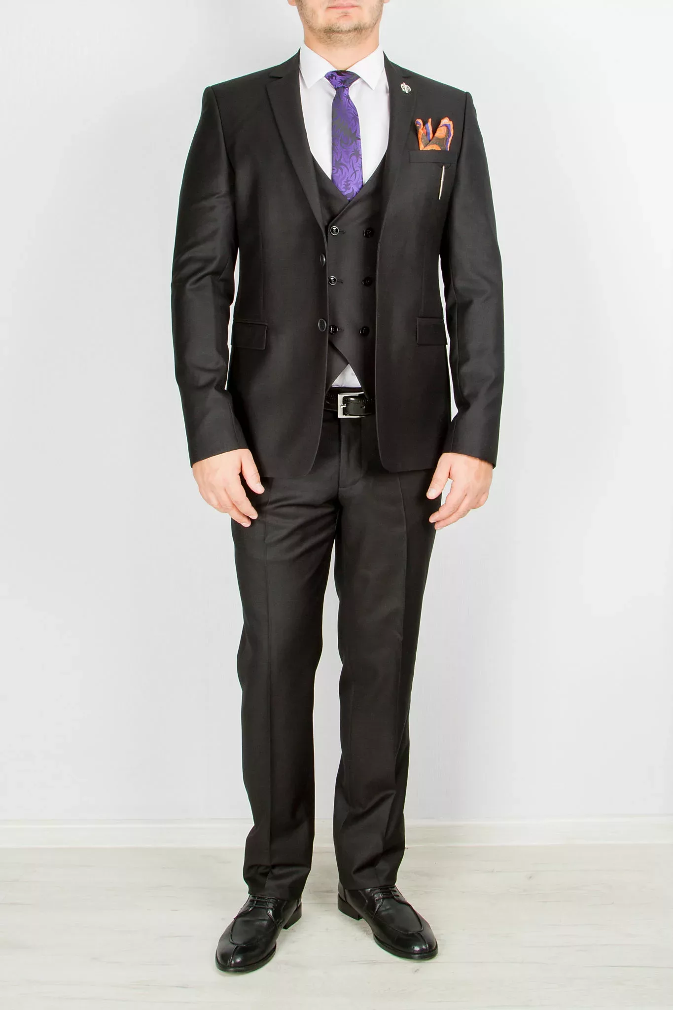 Костюм отшит в приталенной модели super-slim. Пиджак имеет застежку на две пуговицы, узкий лацкан воротника, нагрудный карман с листочкой комплектуемый платком, значек в петлице. Двубортный жилет с пуговицами в цвет пиджака, спина также из основной (не подкладочной) ткани. Брюки узкие, имеют свободную длину. По вашей просьбе мы подгоним длину брюк под вашу ростовку. В костюме яркий, красивый подборт отлично гармонирующий с тканью верха. Костюм отшит из смесовой ткани высокого качества в составе 80% шерсти 15% вискозы и 5% эластан, что позволяет долго сохранять презентабельный внешний вид и форму, ткань устойчива к заминанию.