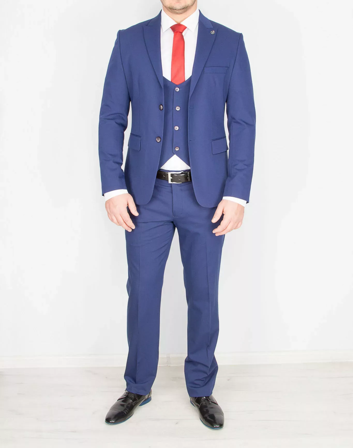 Костюм-тройка, приталенная модель синего цвета