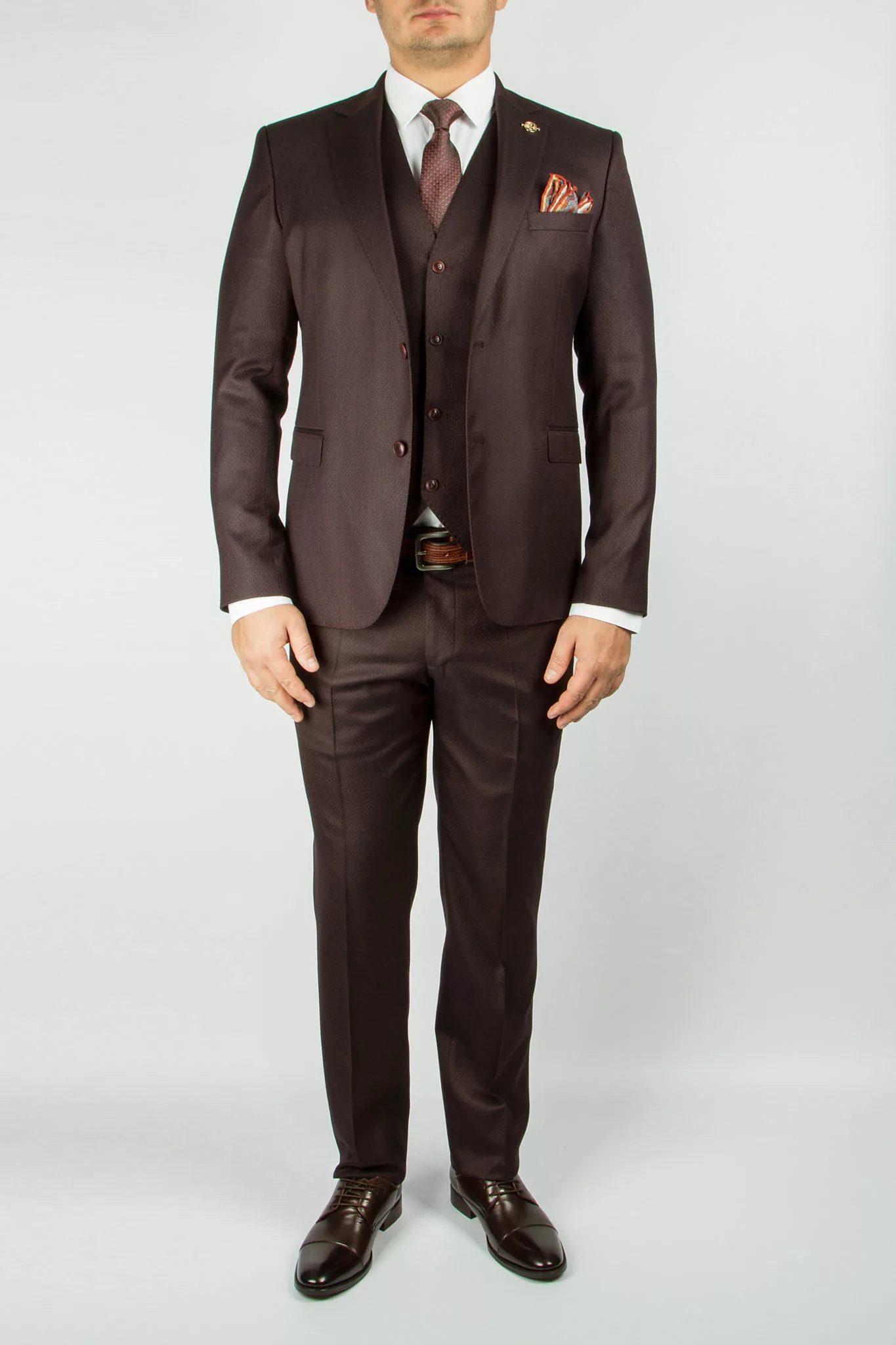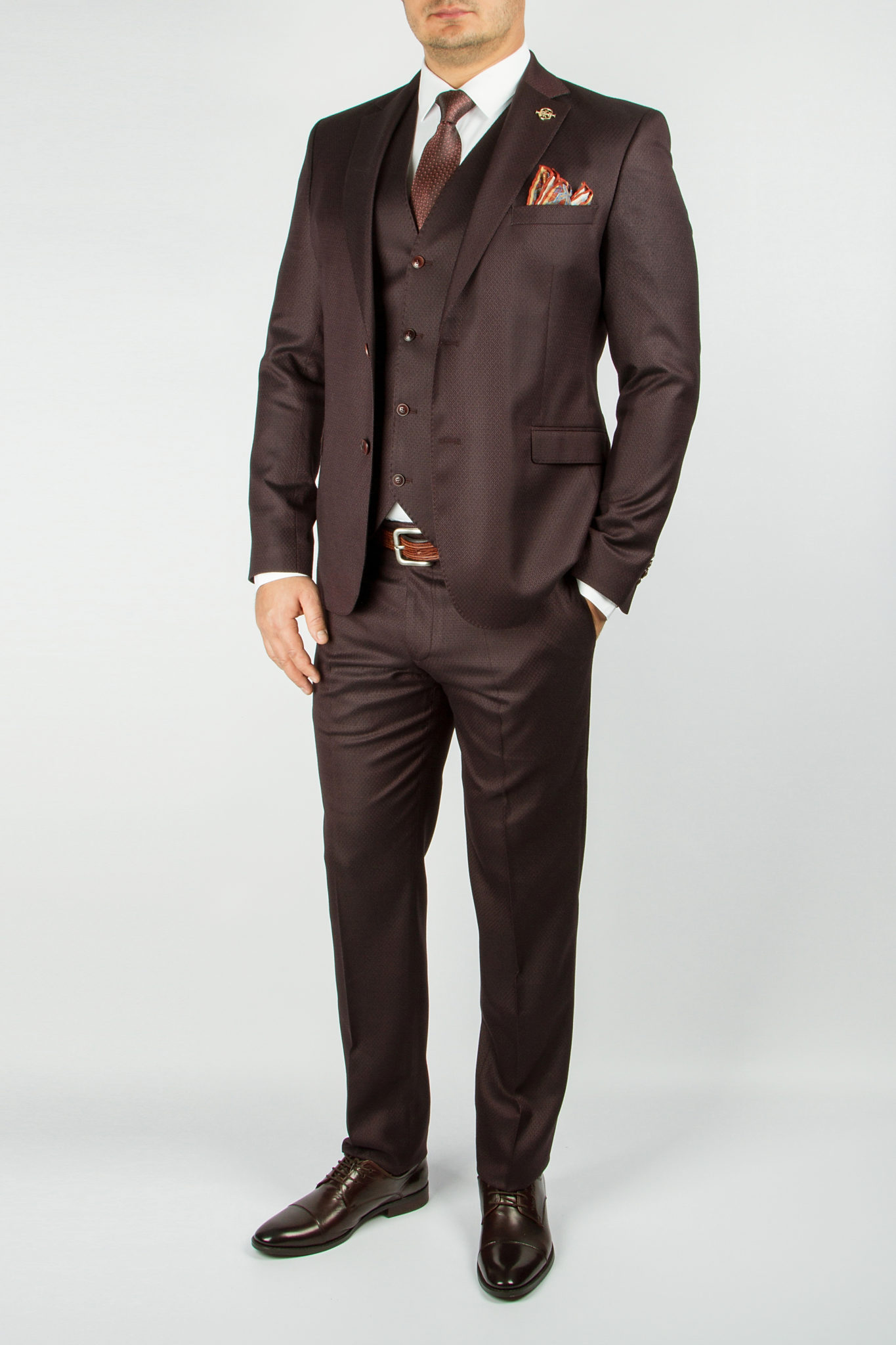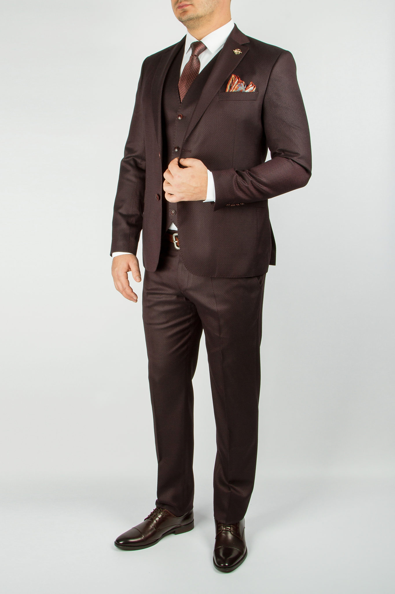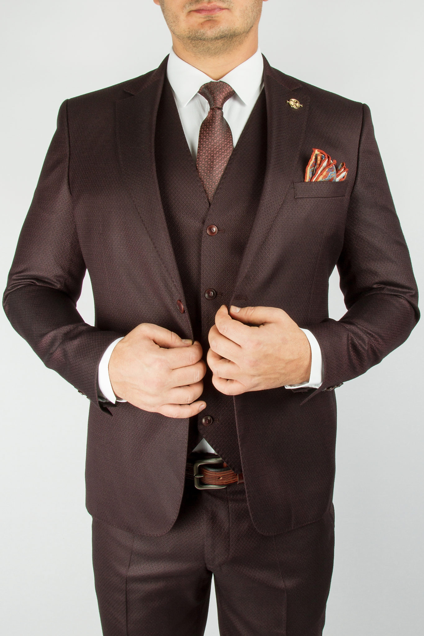 Костюм очень красивого бордового цвета с легким глянцем, отлично подойдет для торжественных случаев таких как свадьба, выпускной вечер, день рождения.
