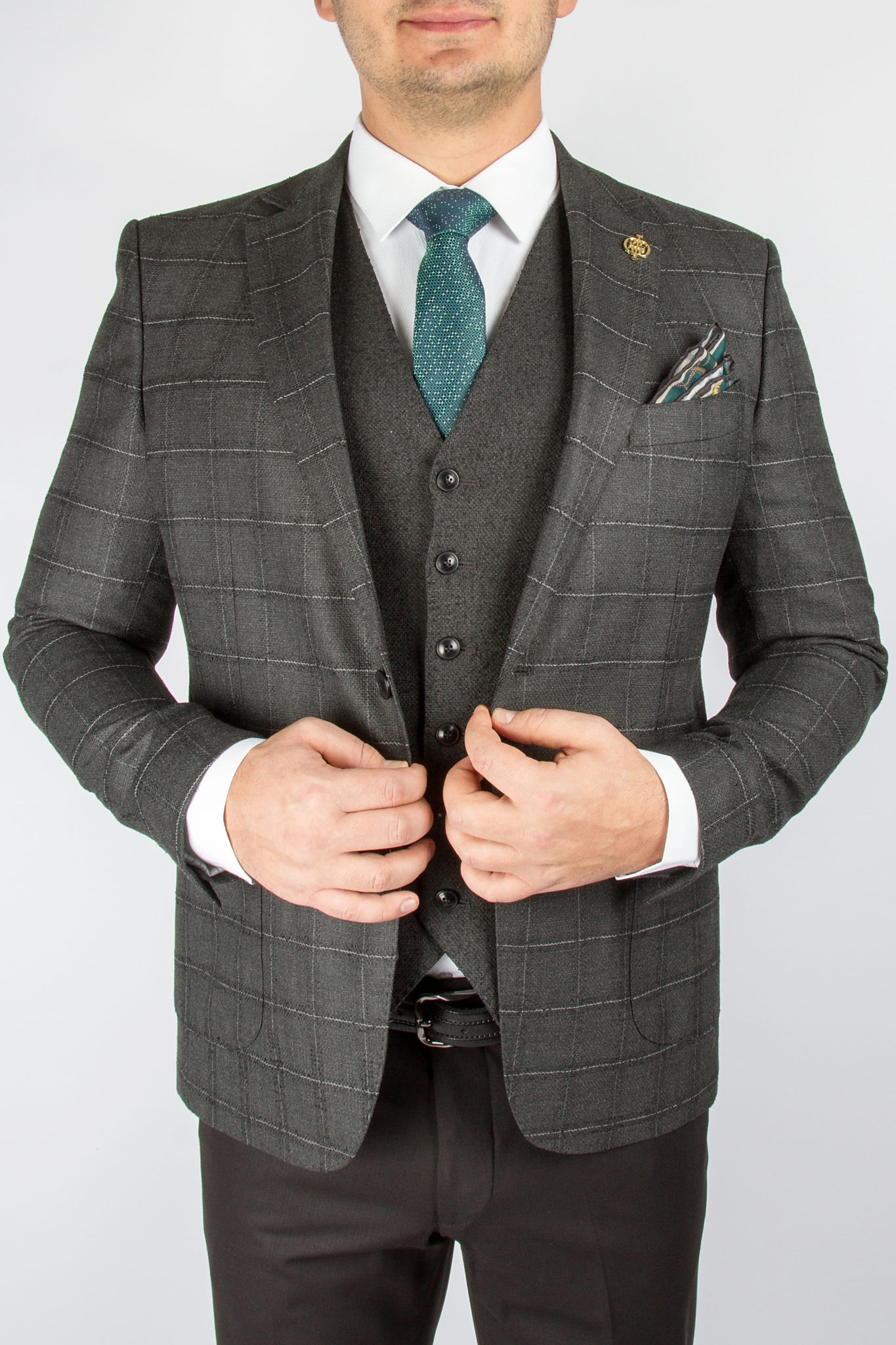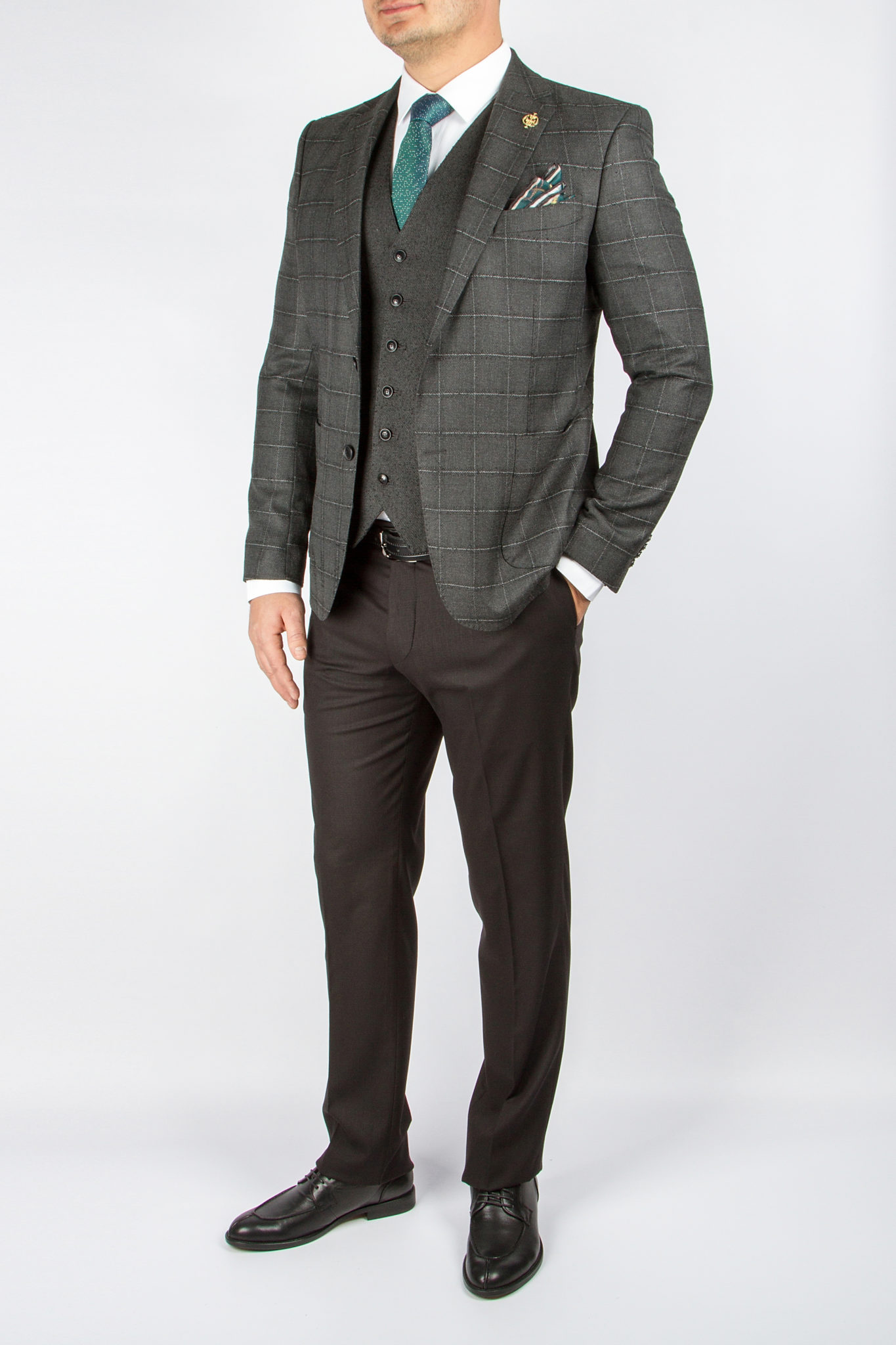 Перейти к товару Костюм-тройка изумрудного цвета в клетку