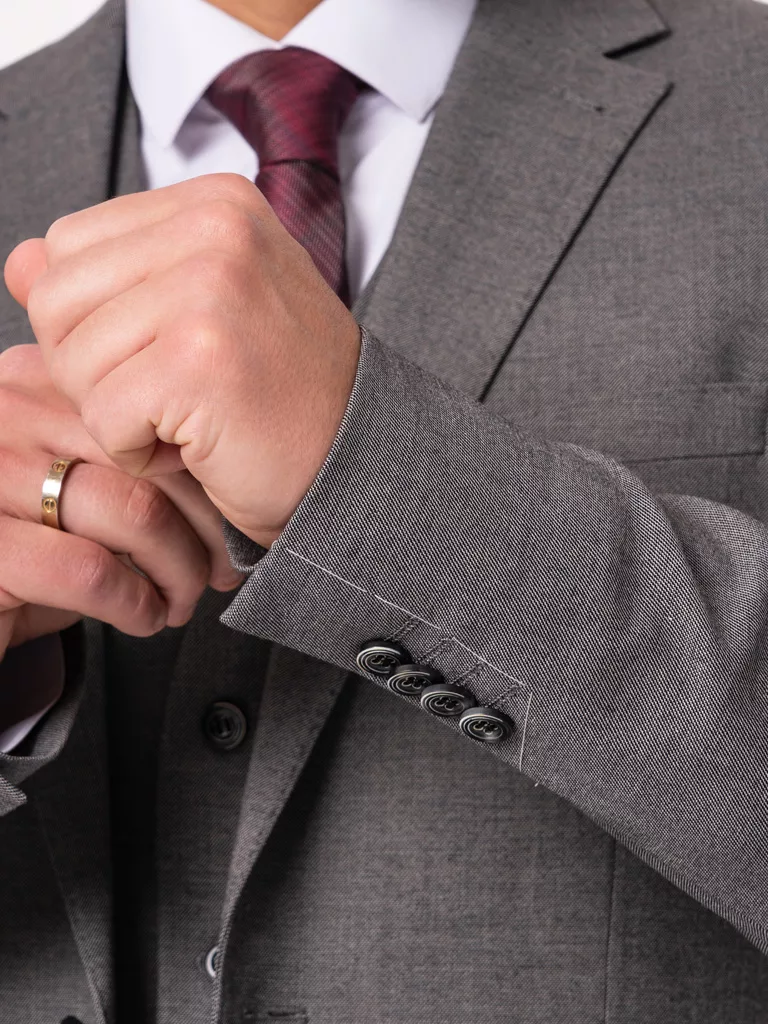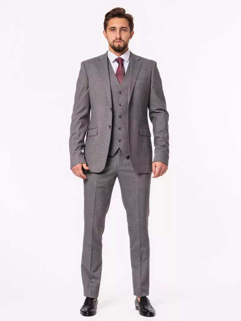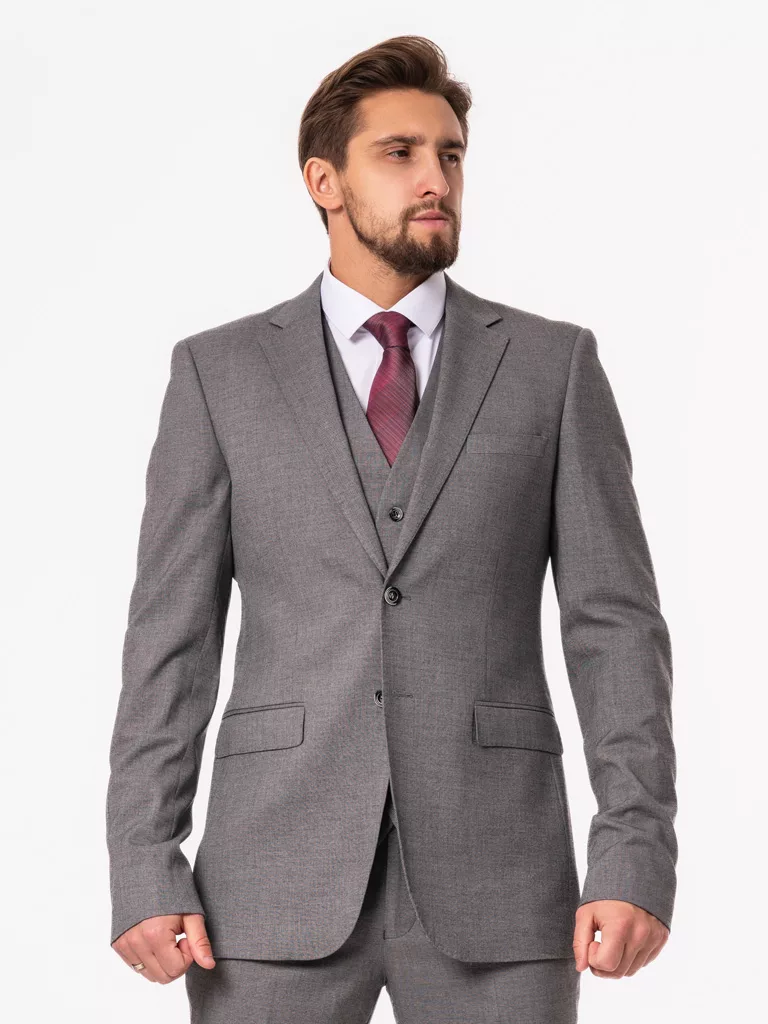 Костюм имеет замечательную посадку, отлично садится практически на любой тип фигуры. Данная модель отшита в светло-сером цвете, отлично подойдет для офиса и повседневной носки. Жилет костюма по спине также тканевый, что позволяет использовать его отдельно только с брюками.