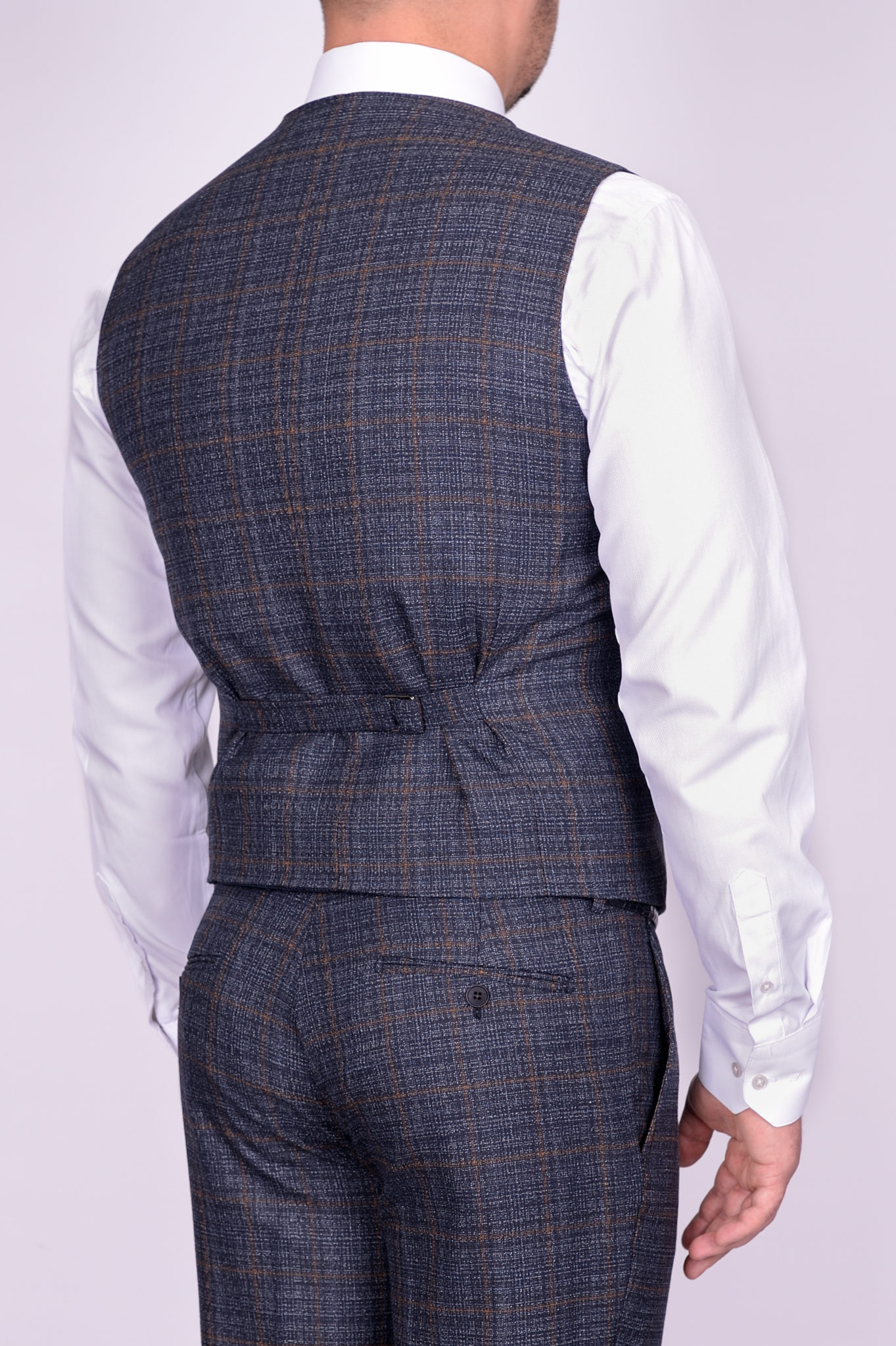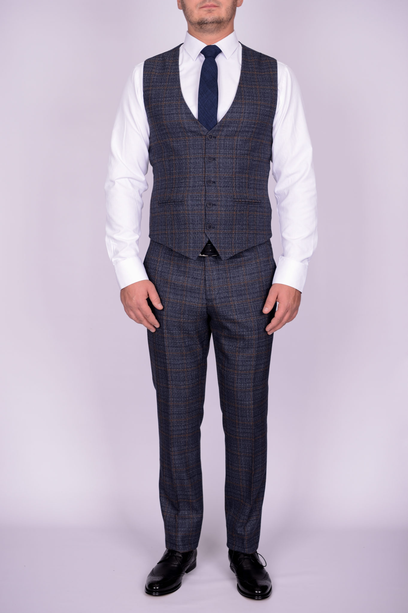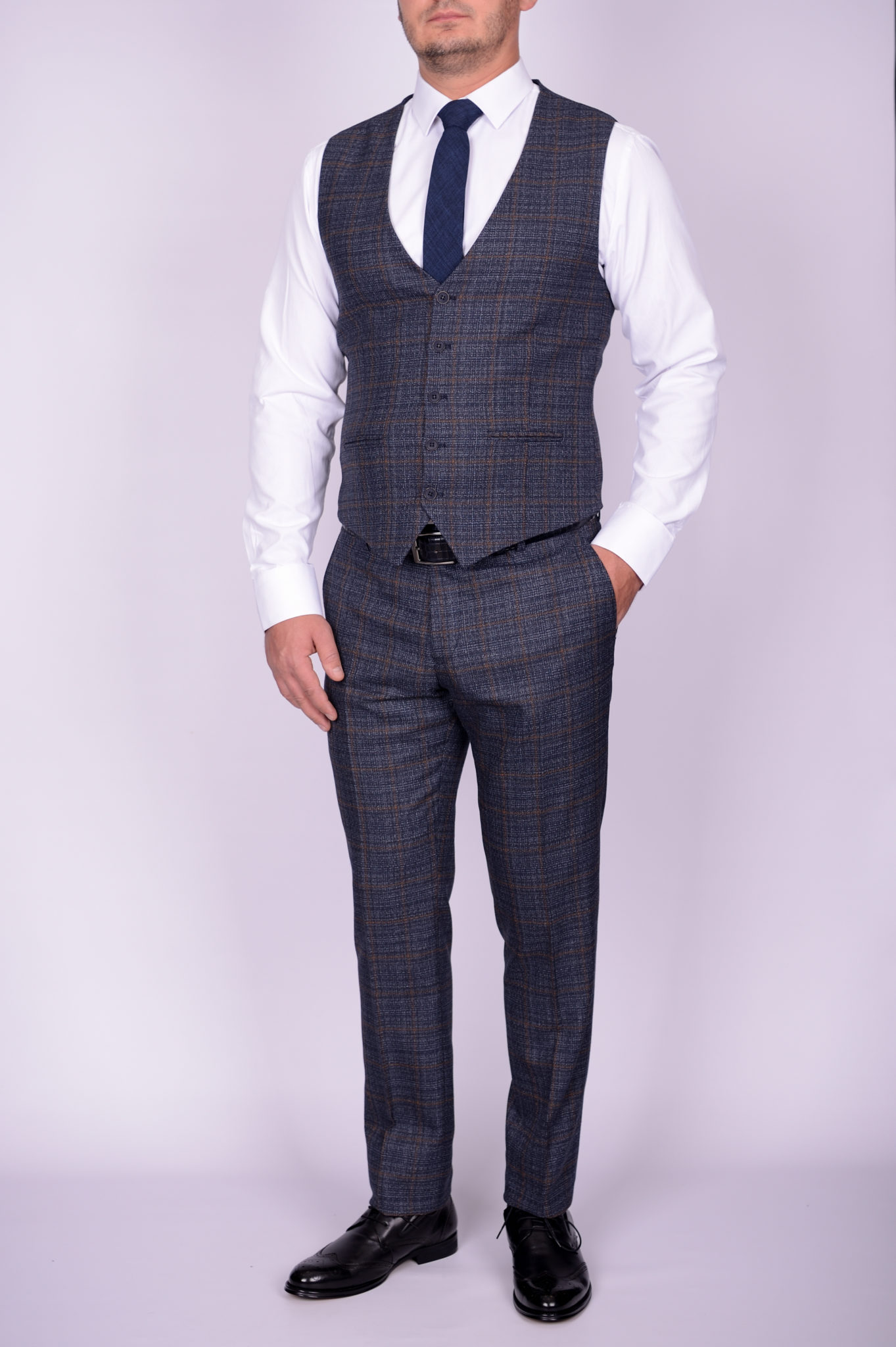 Костюм имеет замечательную посадку, отлично садится практически на любой тип фигуры. Ткань верха, имеет плотную текстуру, соответственно костюм очень хорошо садится по фигуре, без складок и заломов . Жилет костюма по спине также тканевый, что позволяет использовать его отдельно с брюками.