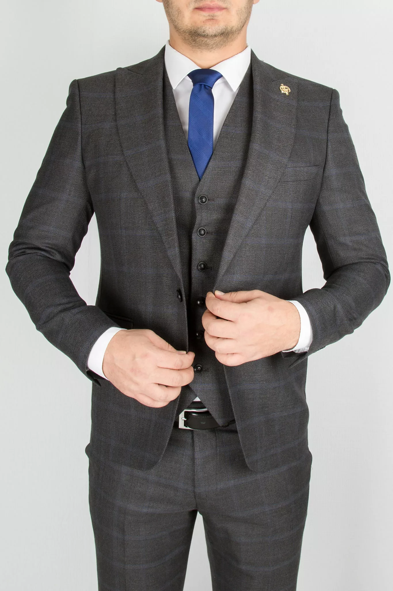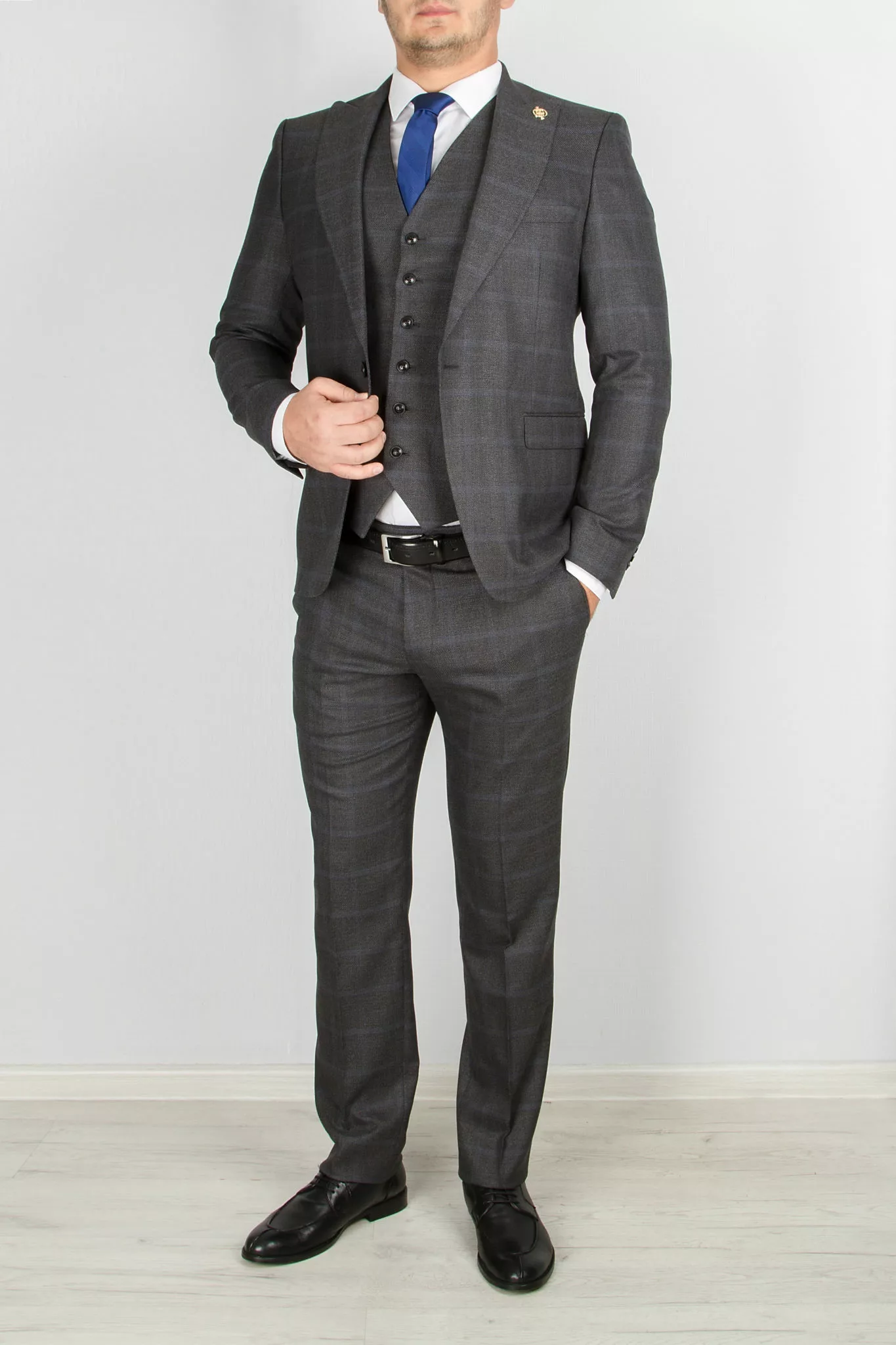 Костюм-тройка синего цвета в клетку