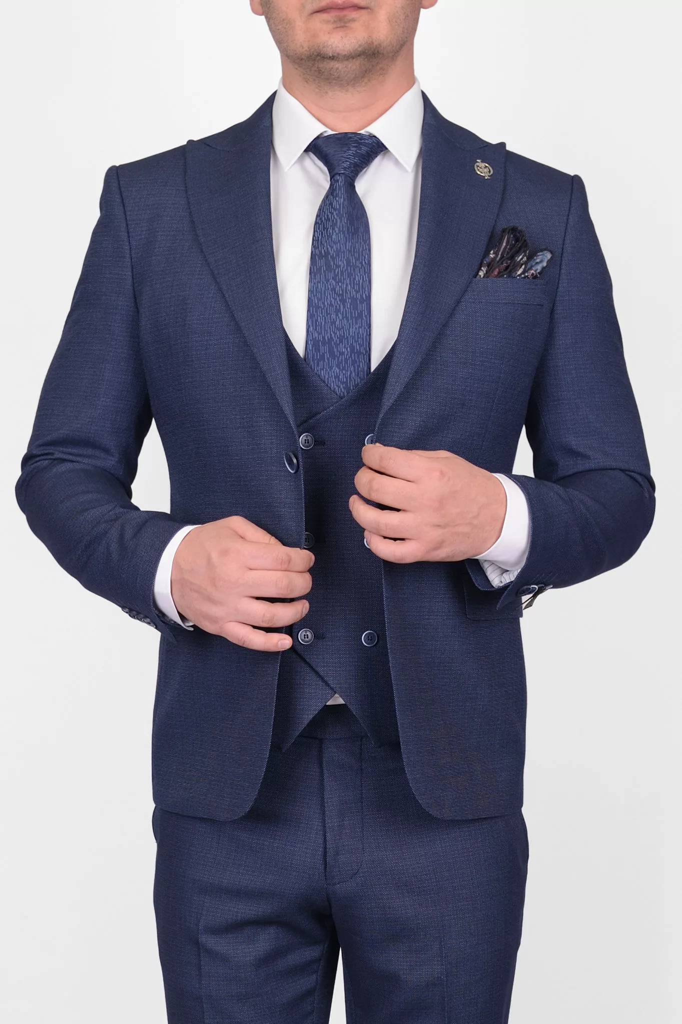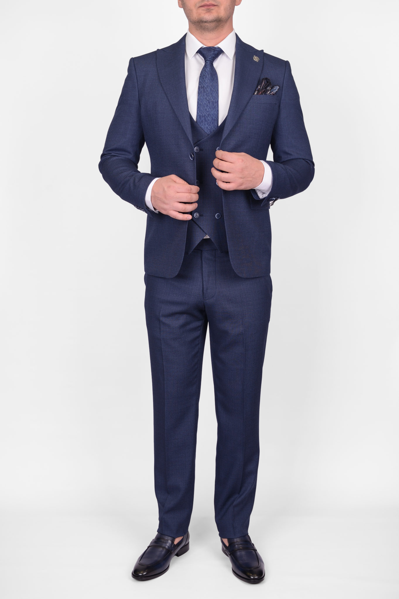 Костюм-тройка синего цвета, облегченная модель