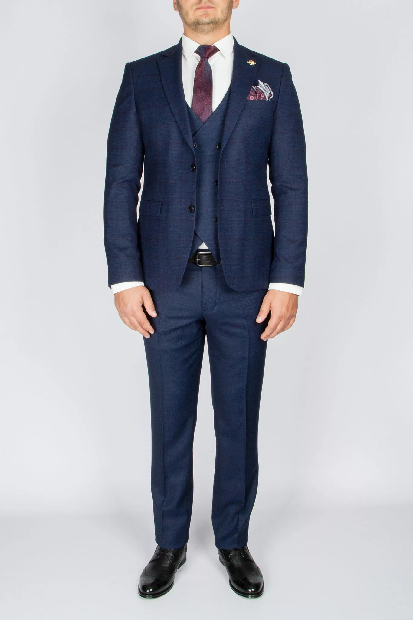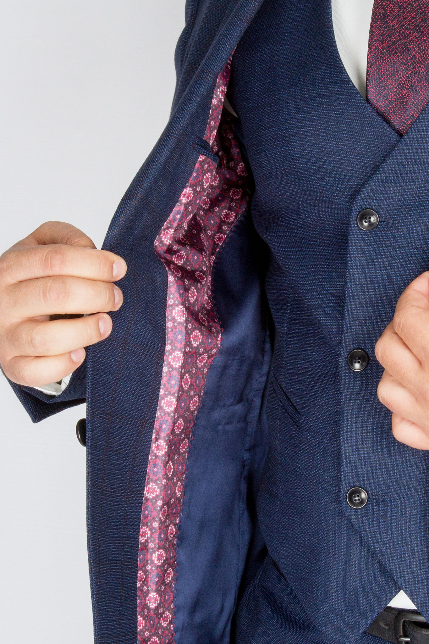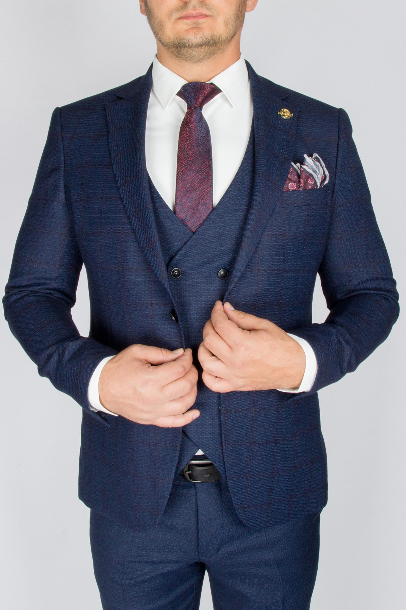 Костюм отшит в современной приталенной модели slim fit. Пиджак имеет застежку на две пуговицы, заостренный лацкан воротника, значек в петлице. Жилет двубортный с регулятором обьема. Брюки прямые без защипов, отшиты в классическом стиле приуженого кроя. По вашей просьбе мы подгоним длину брюк под вашу ростовку, заузим по ширине. Костюм отшит из смесовой ткани высокого качества в составе 80% шерсти и 15% вискозы и лайкра 5%, что позволяет долго сохранять презентабельный внешний вид и форму, ткань устойчива к заминанию.