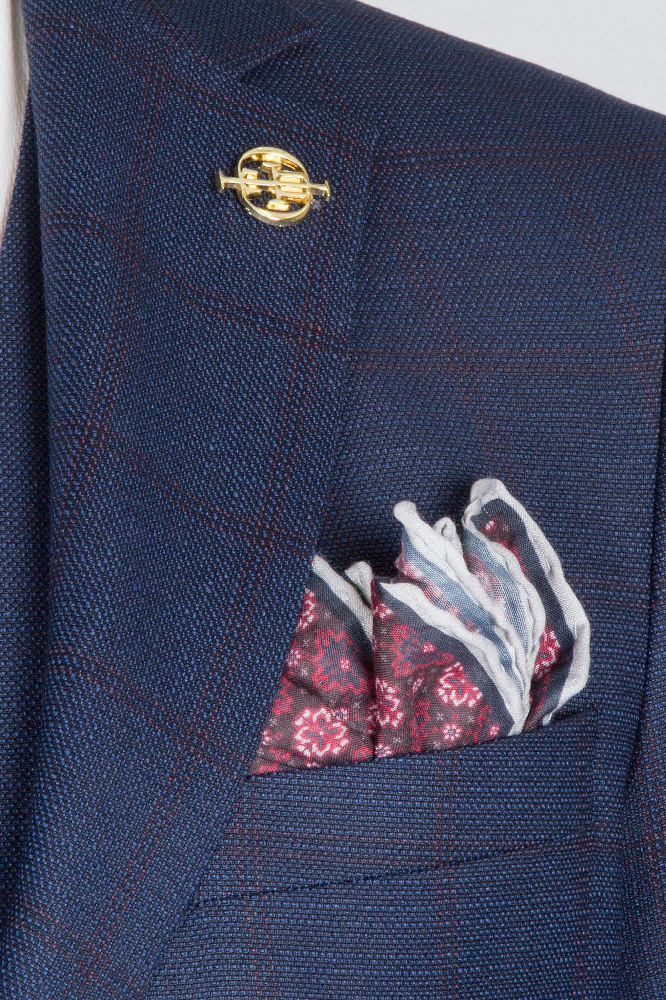 Костюм отшит в модели «компаньон»,- однотонные жилет и брюки скомпанованы с клеточным пиджаком.