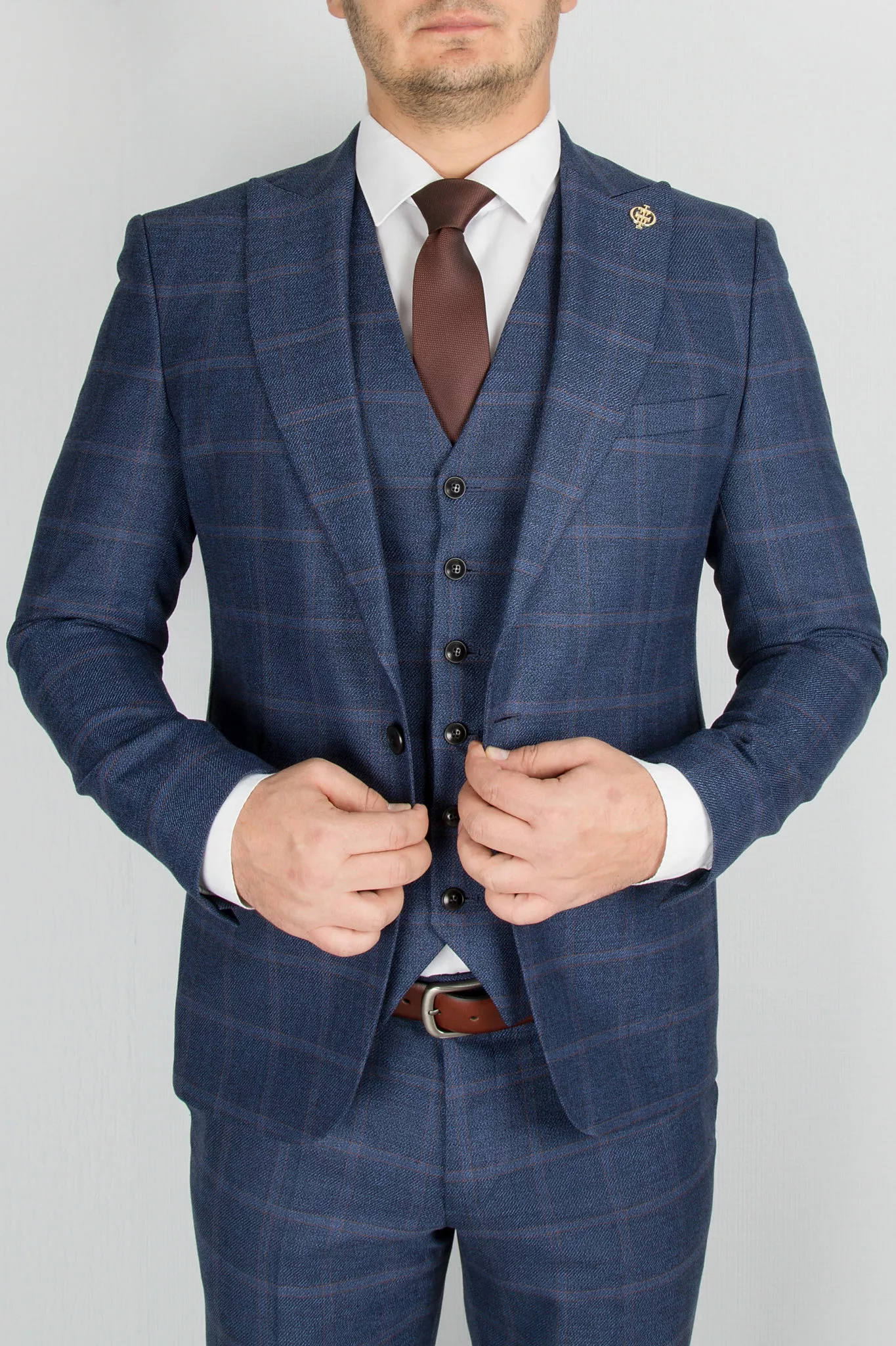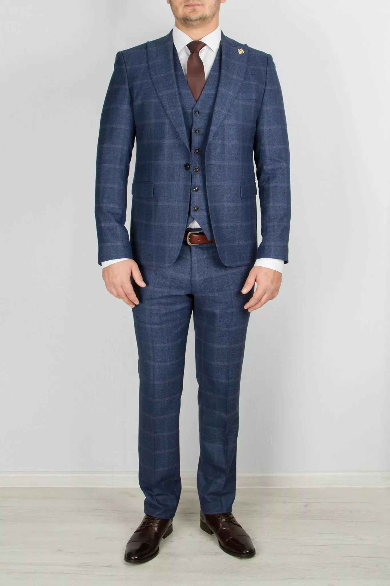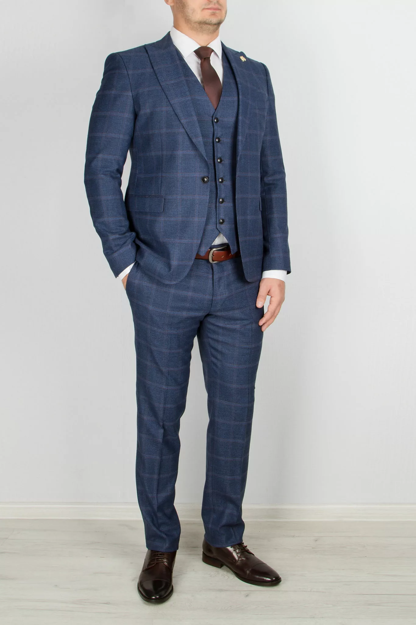 Костюм-тройка синего цвета в клетку