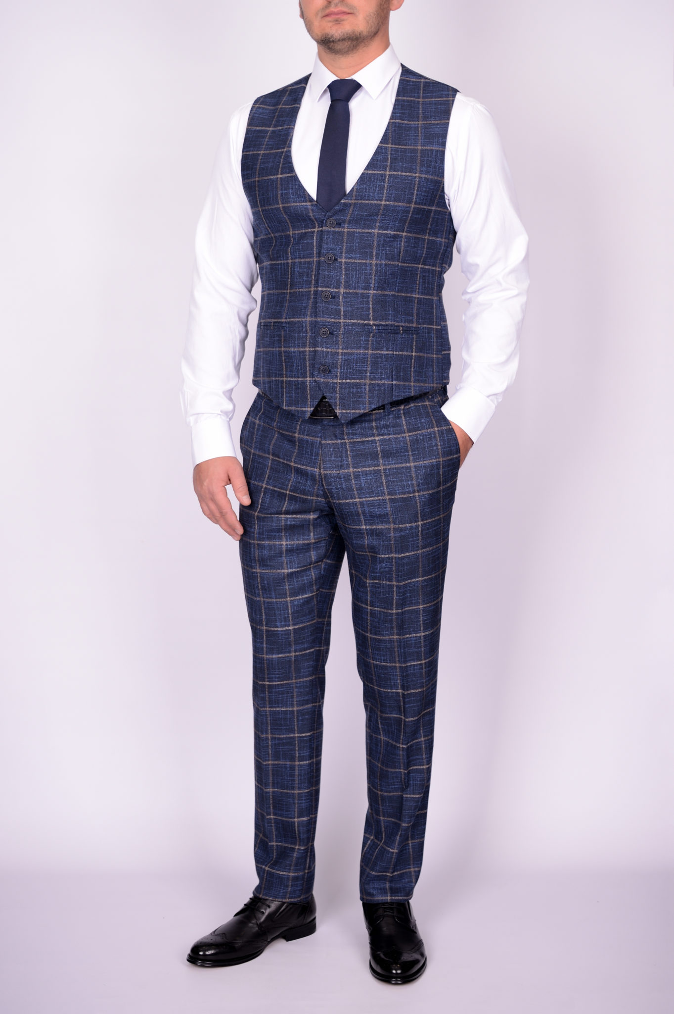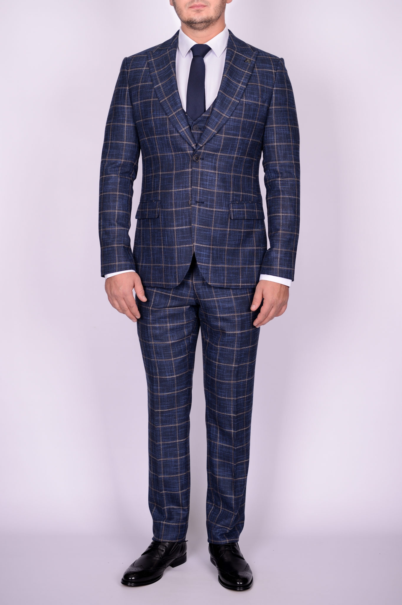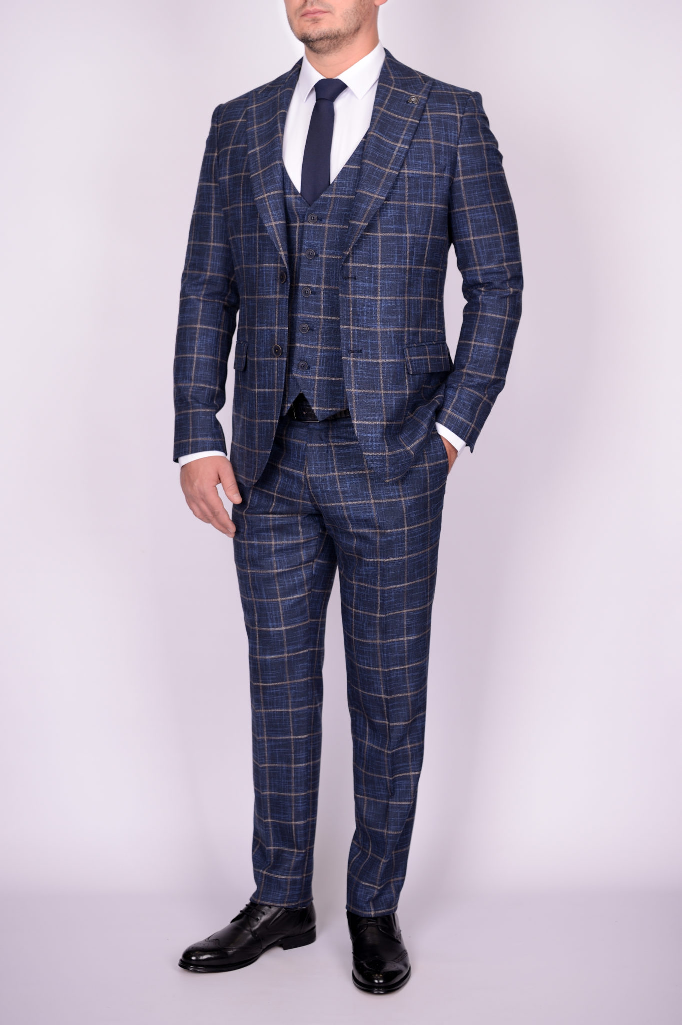Костюм-тройка синего цвета в крупную клетку