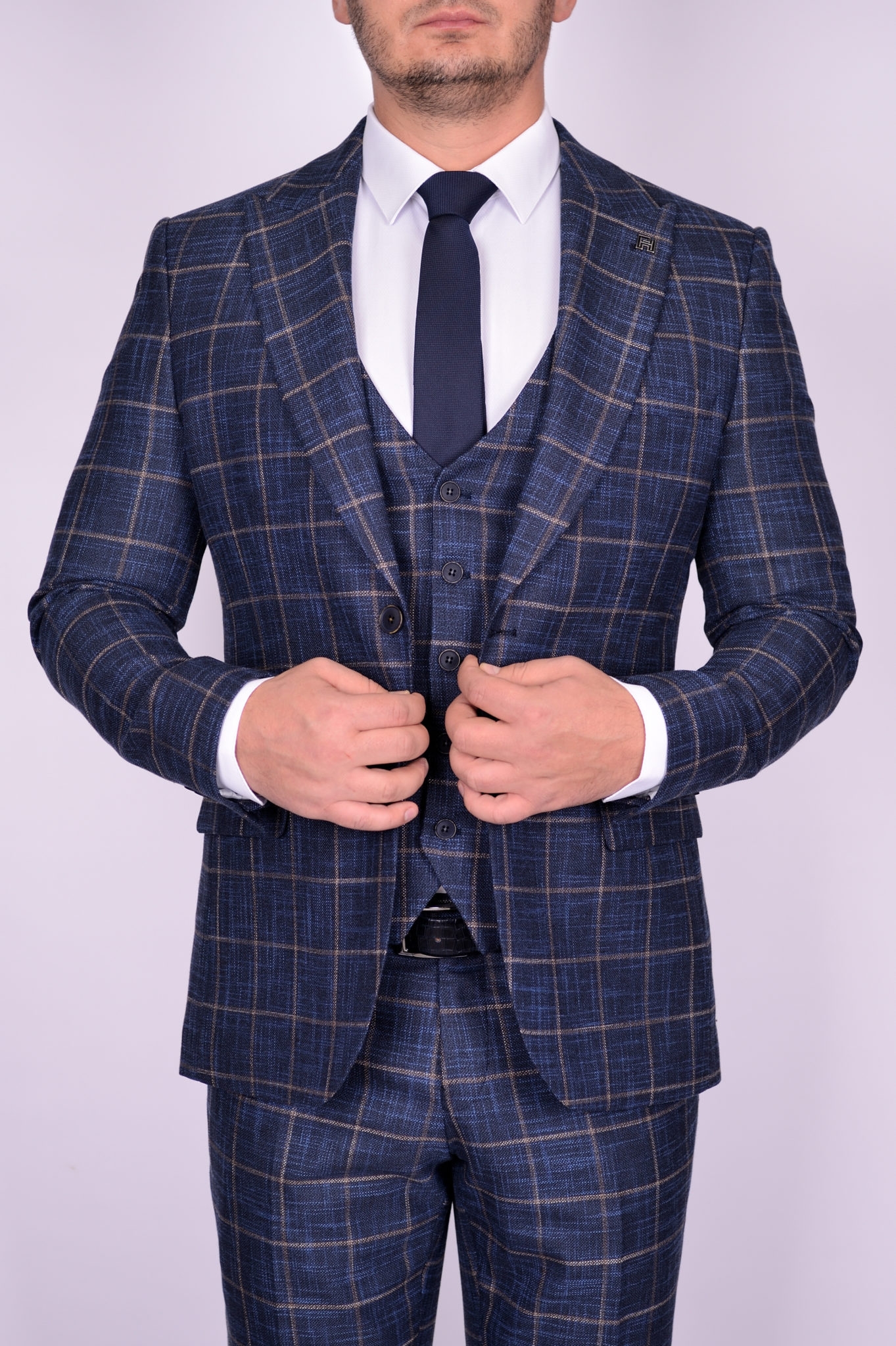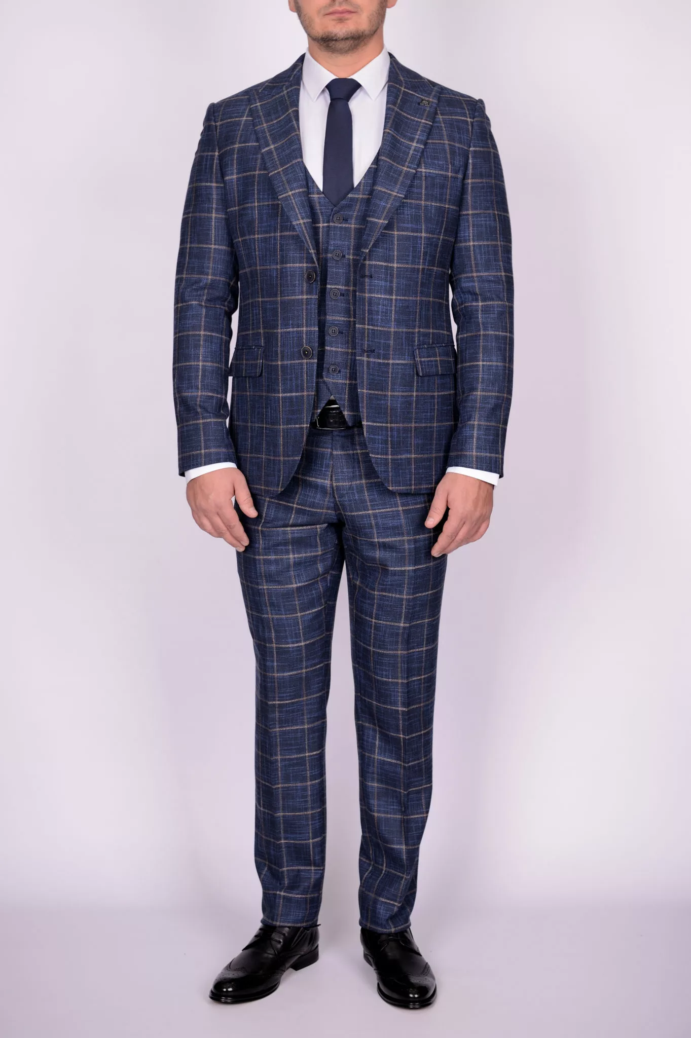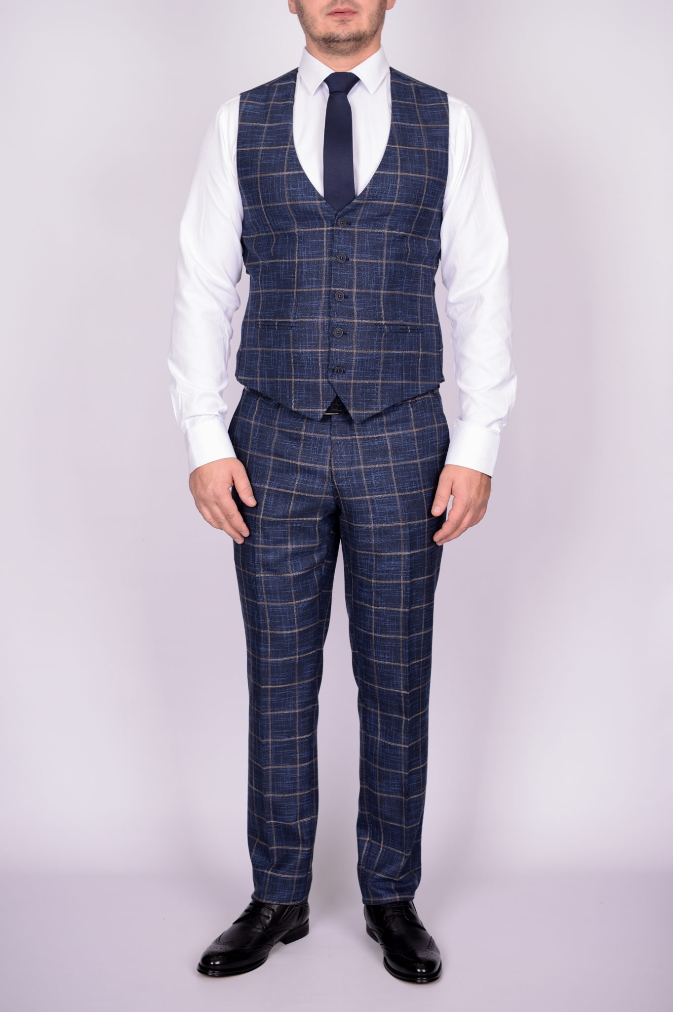 Костюм-тройка синего цвета в крупную клетку