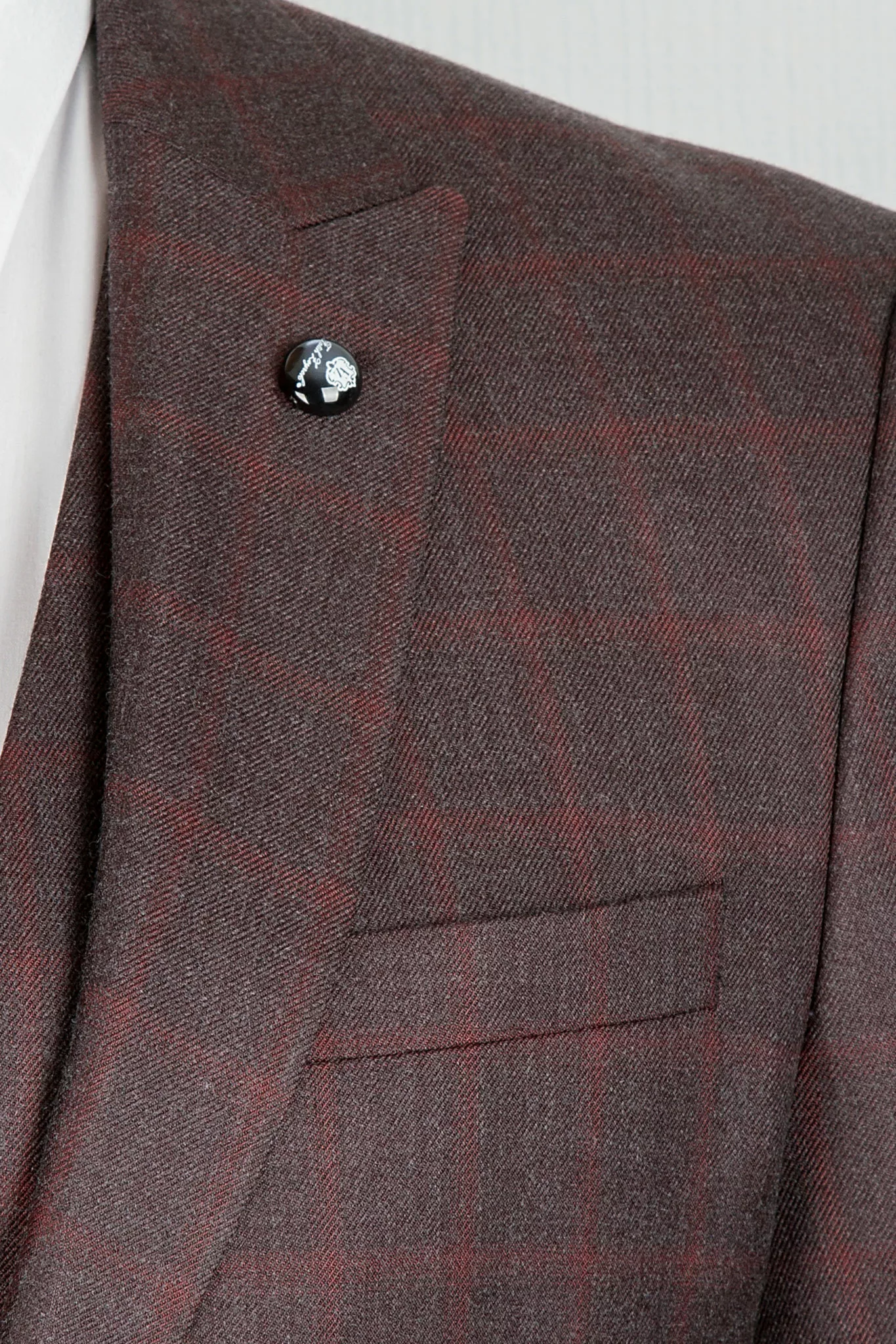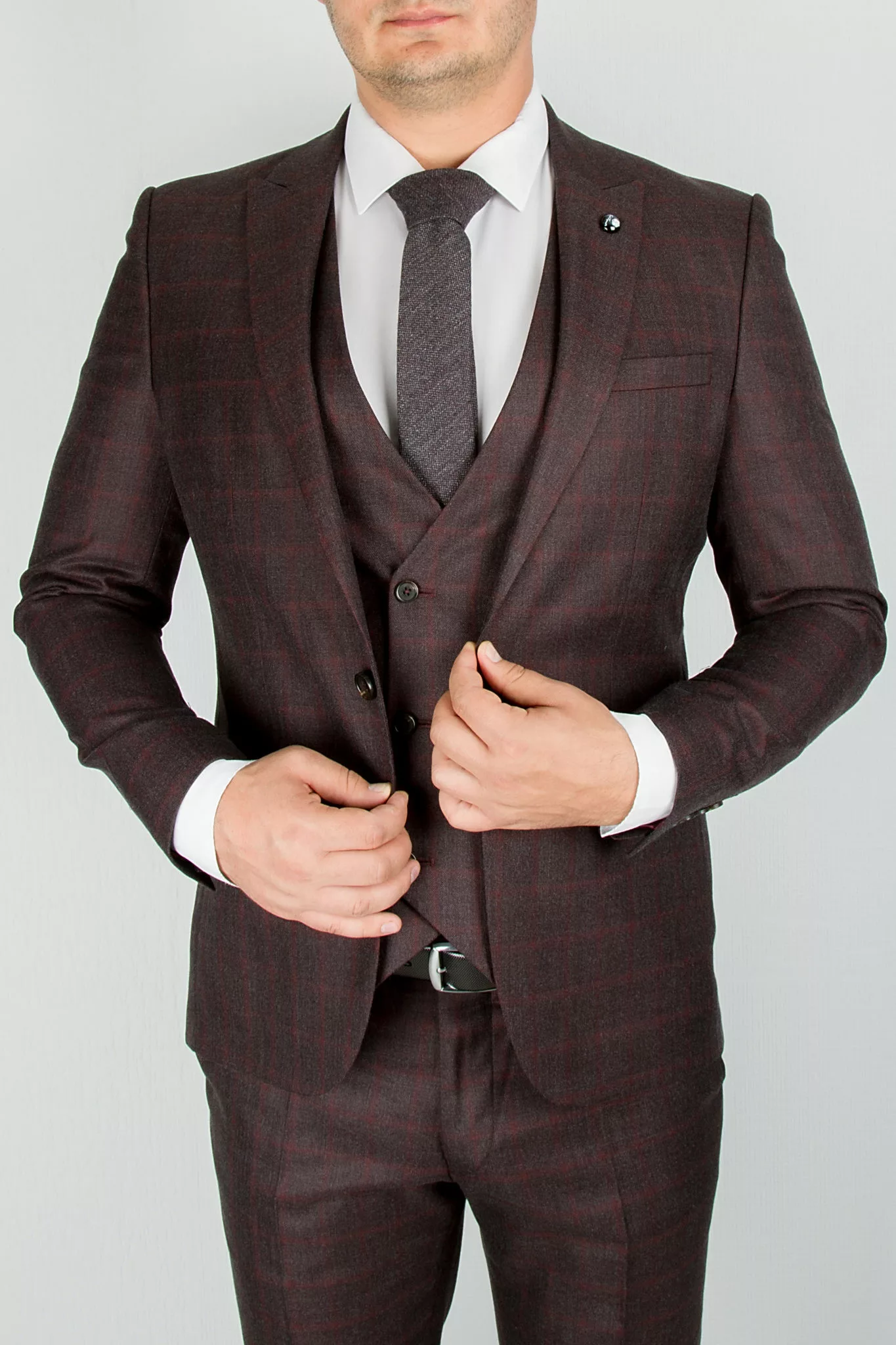 Перейти к товару Костюм-тройка синего цвета с коричневой клеткой
