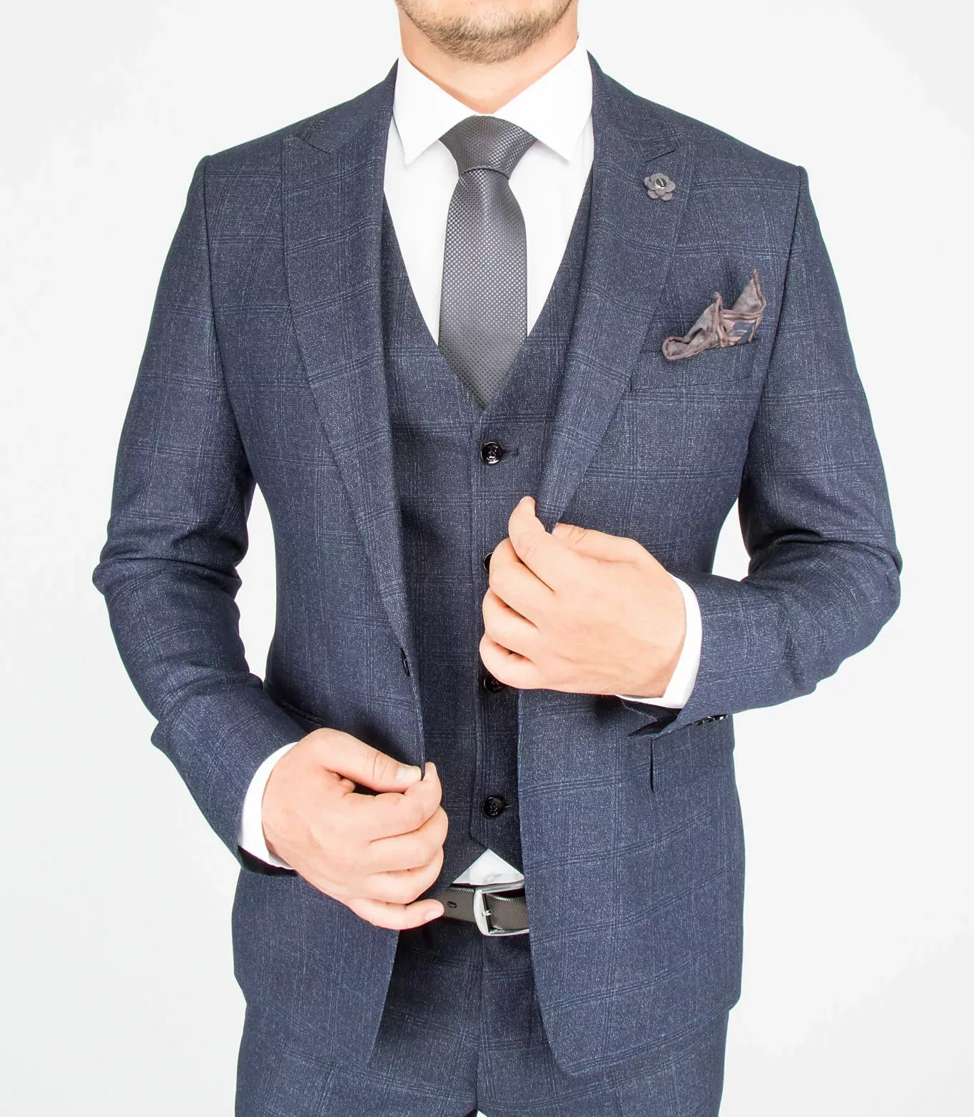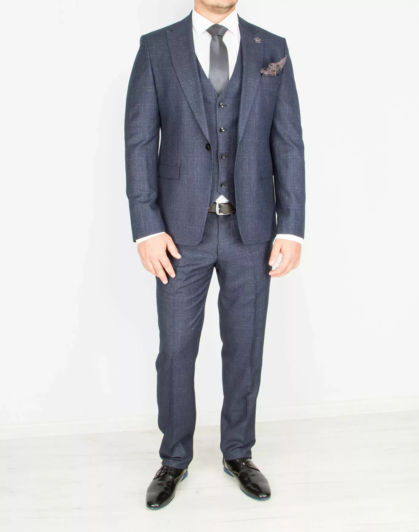 Костюм-тройка темно-серого цвета в неявную клетку