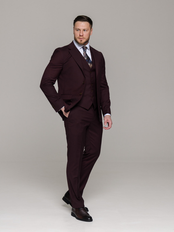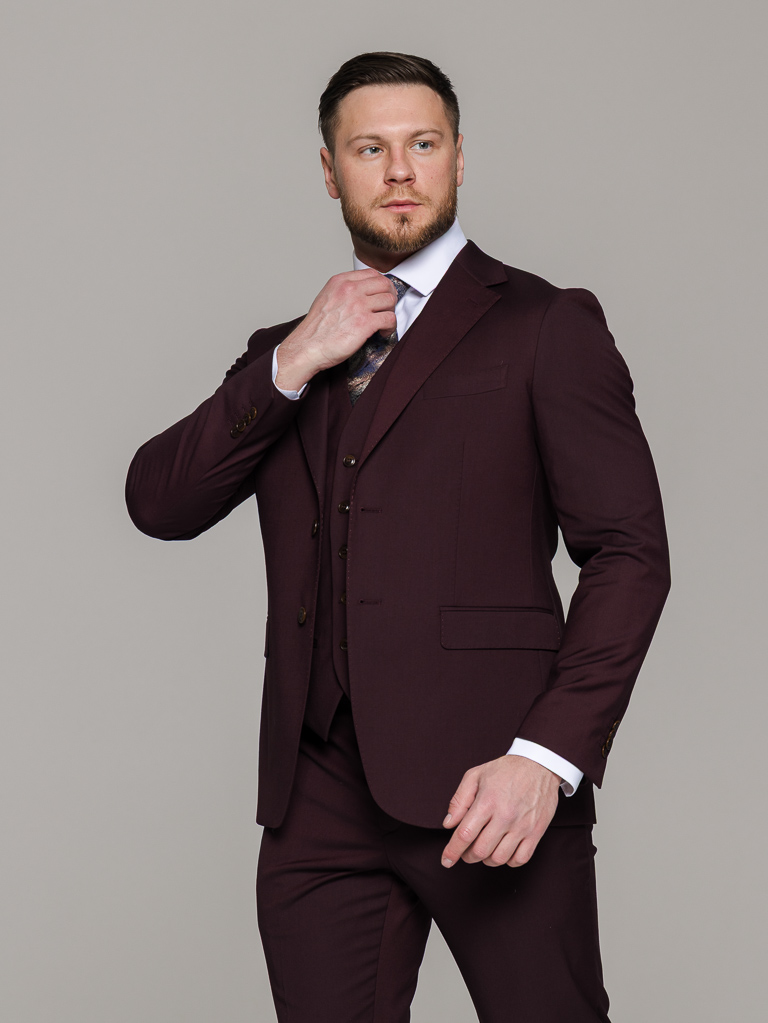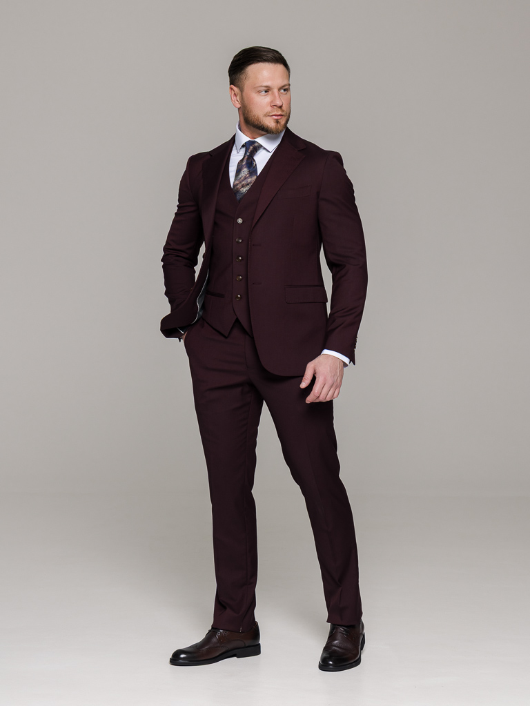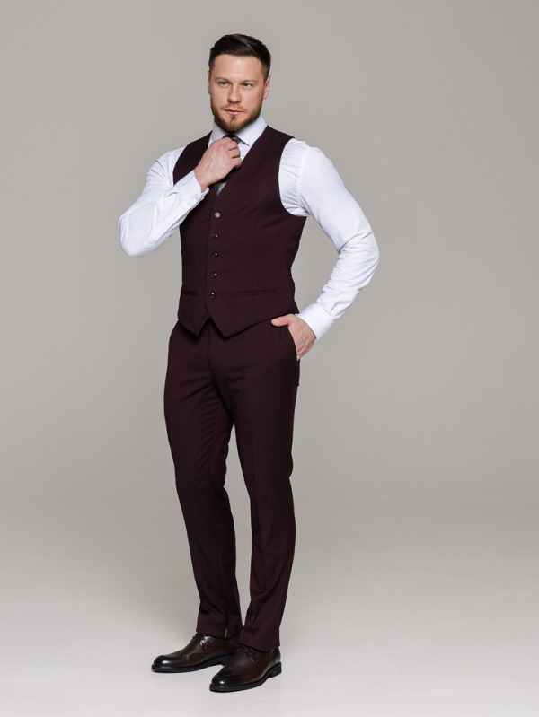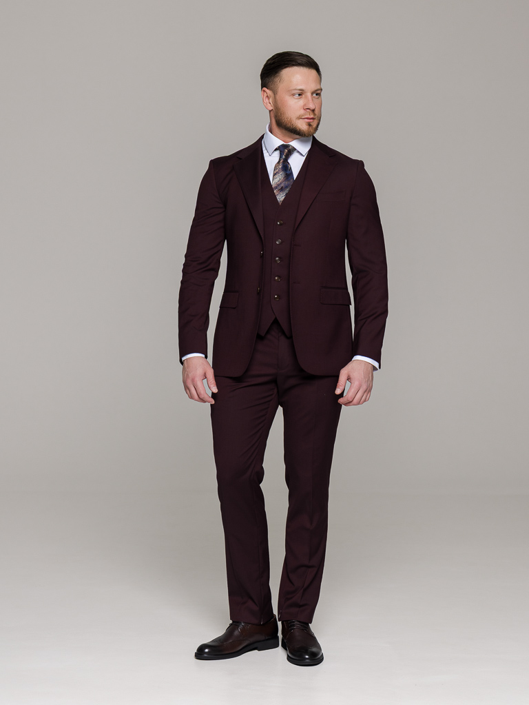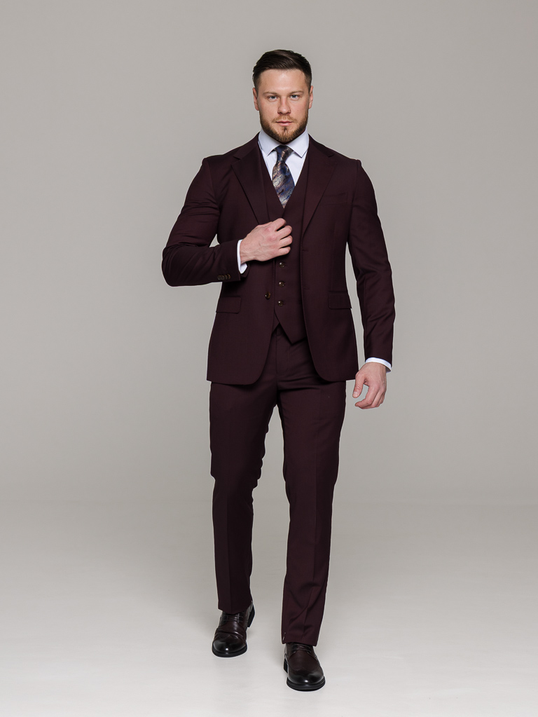 Костюм-тройка винный цвет