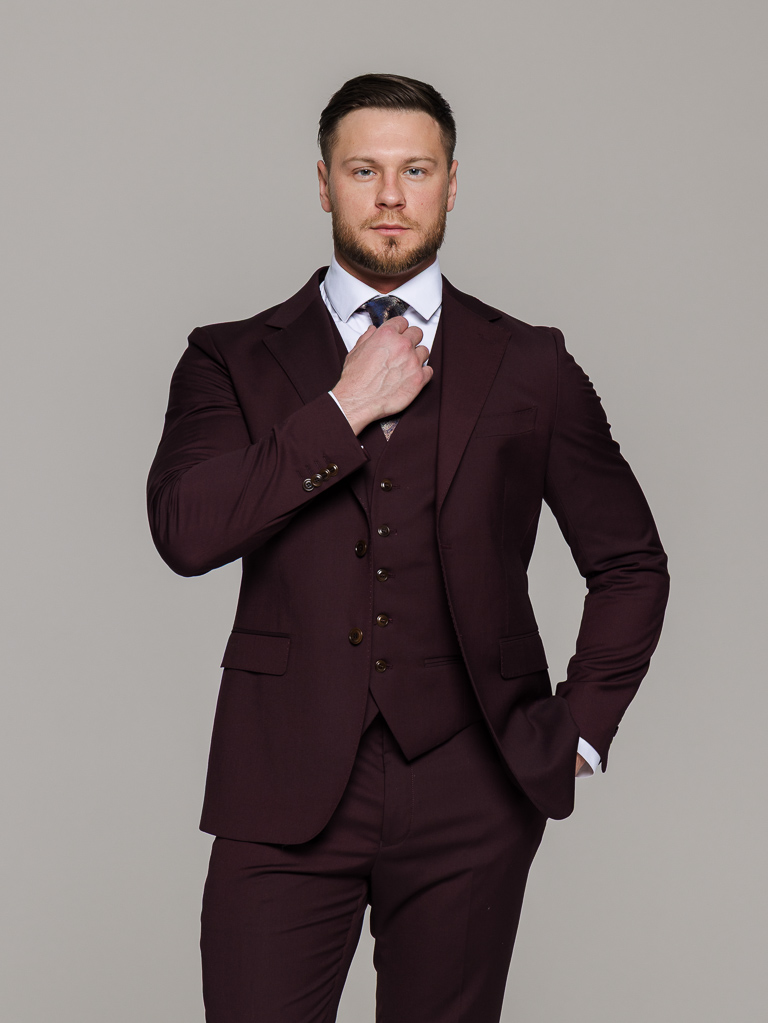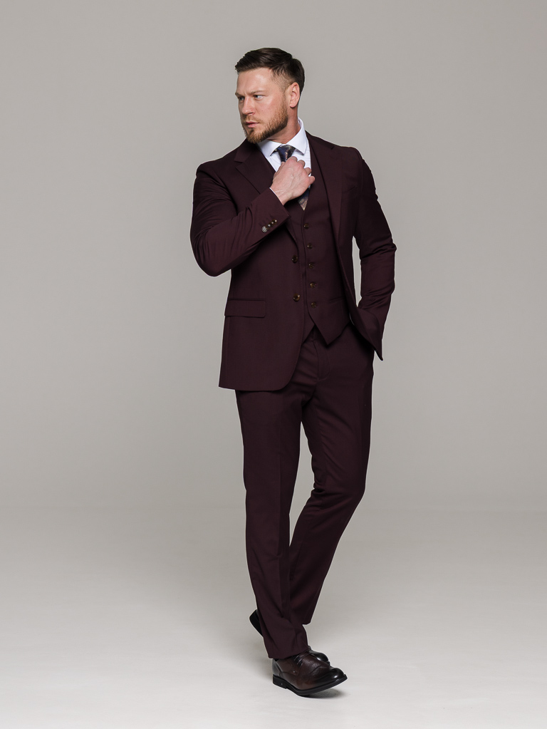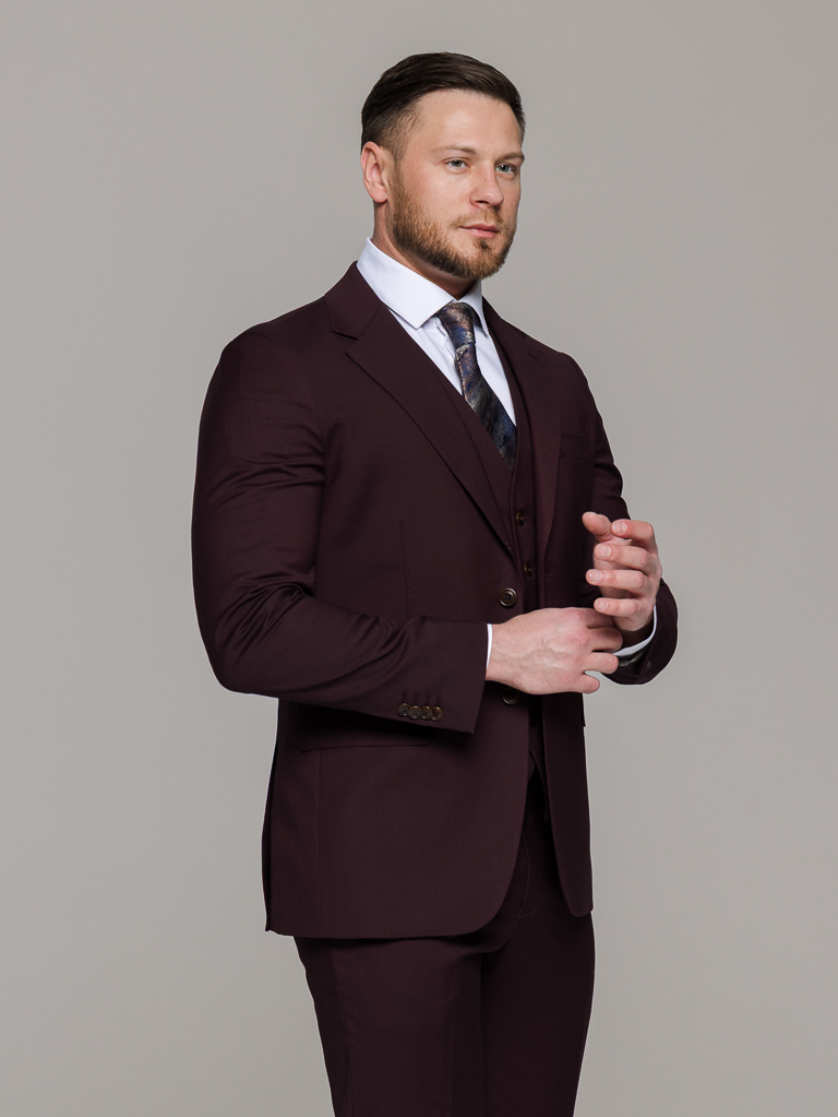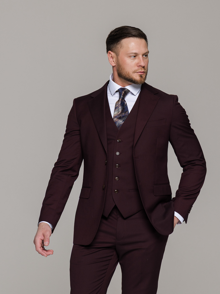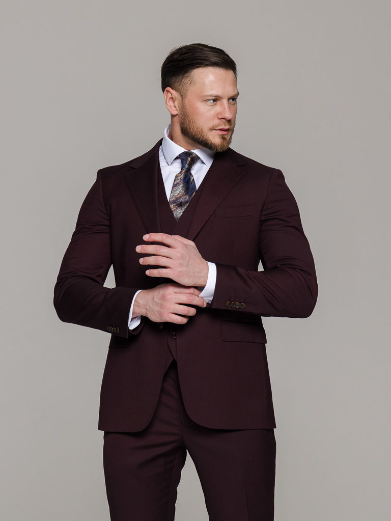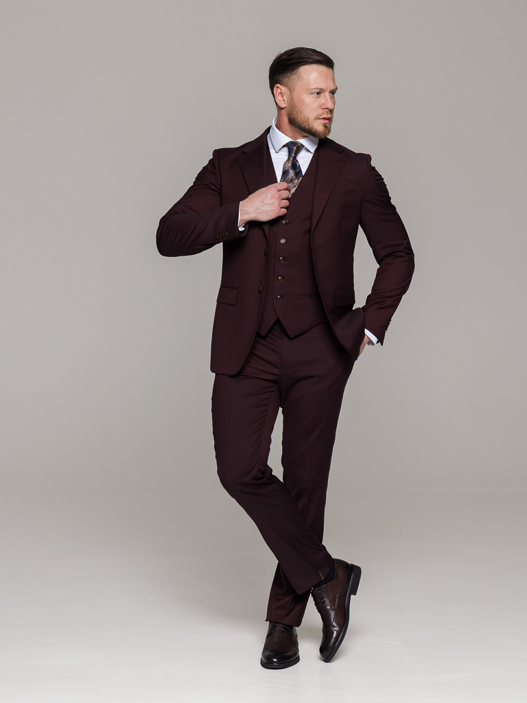 Костюм-тройка винный цвет