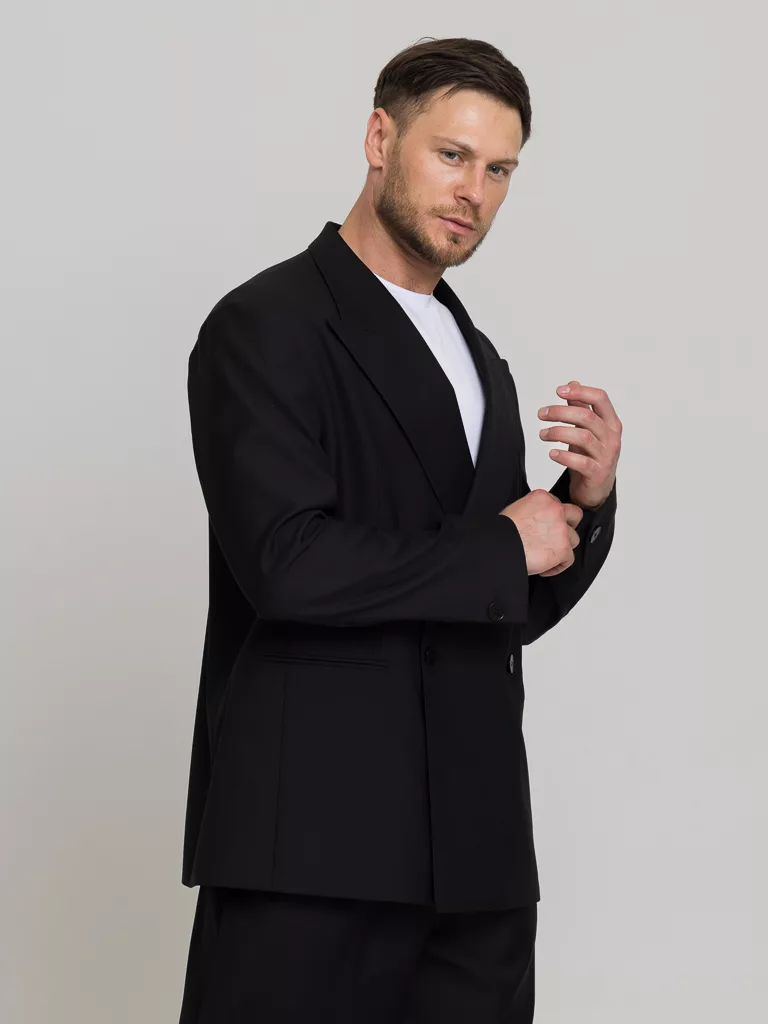 Оверсайз двубортный матово-черного цвета