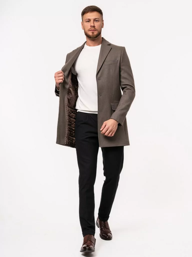 Пальто мужское, укороченная модель. Классический фасон, английский воротник, один шлиц сзади. Пальто произведено из высококачественных материалов в составе 70% шерсти и 30% вискозы, что создает отличное сочетание тепла и легкости. Передовые технологии пошива и большой, накопленный, опыт в производстве мужской верхней одежды, обеспечивают идеальную посадку данного пальто.